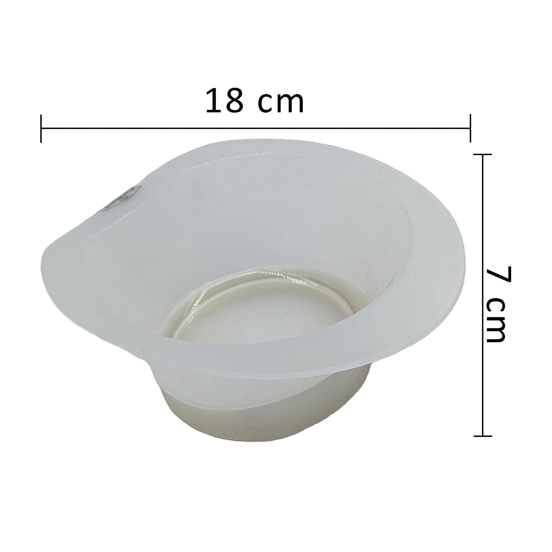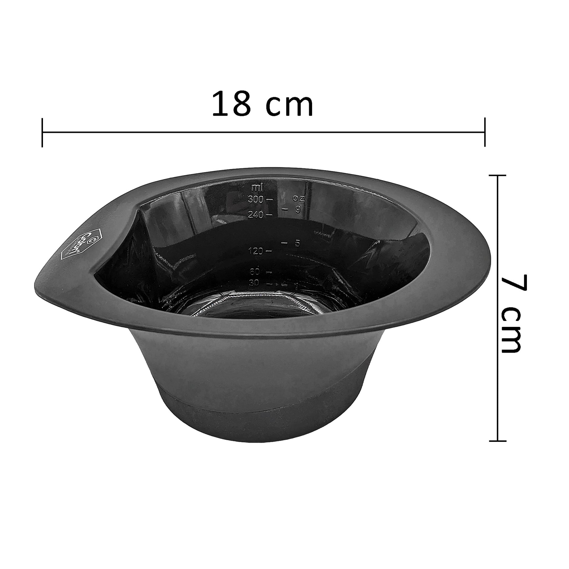 Place the bowl on a stable surface with the non-slip base ensuring it remains secure during use, then add your colour and developer according to the measuring guides, mixing thoroughly with a tint brush until completely blended. After use, rinse immediately with warm water to prevent colour staining, then wash with mild soap and allow to dry completely before storing.