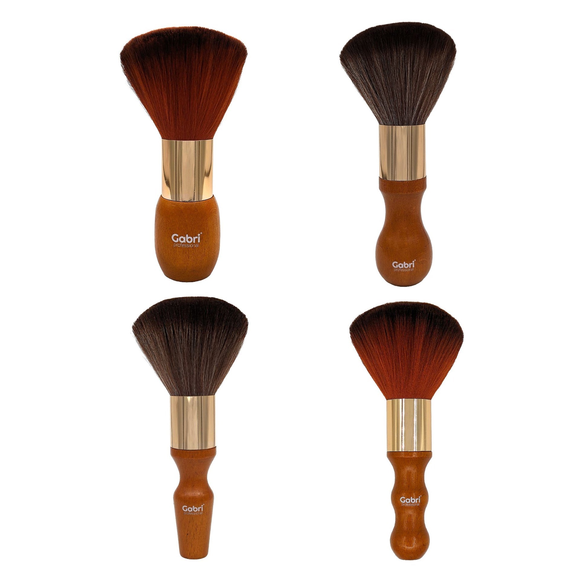 Elevate your finishing technique with these premium wooden-handled brushes designed specifically for discerning barbers and stylists who appreciate both traditional craftsmanship and exceptional performance. The Gabri Wooden Neck Dusters feature authentic wooden handles with a luxurious hand-polished finish that develops a rich patina with use, creating a unique tool that reflects your professional journey whilst providing the perfect ergonomic grip for precise control. Available in multiple sophisticated designs—including the Extra Long Lux with Black Bristles (20cm), Extra Long Lux with Red Bristles (19cm), classic Lux Handle (19cm), and the distinctive Gold Metal Round (16cm)—these versatile brushes allow you to select the perfect aesthetic to complement your barbering style whilst maintaining consistent performance excellence. Each brush features premium-grade soft bristles available in either classic black or rich auburn red that effectively remove loose hair without causing irritation or discomfort.