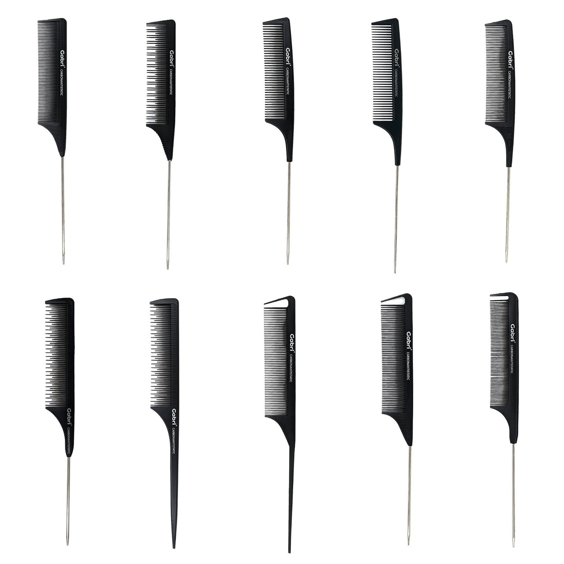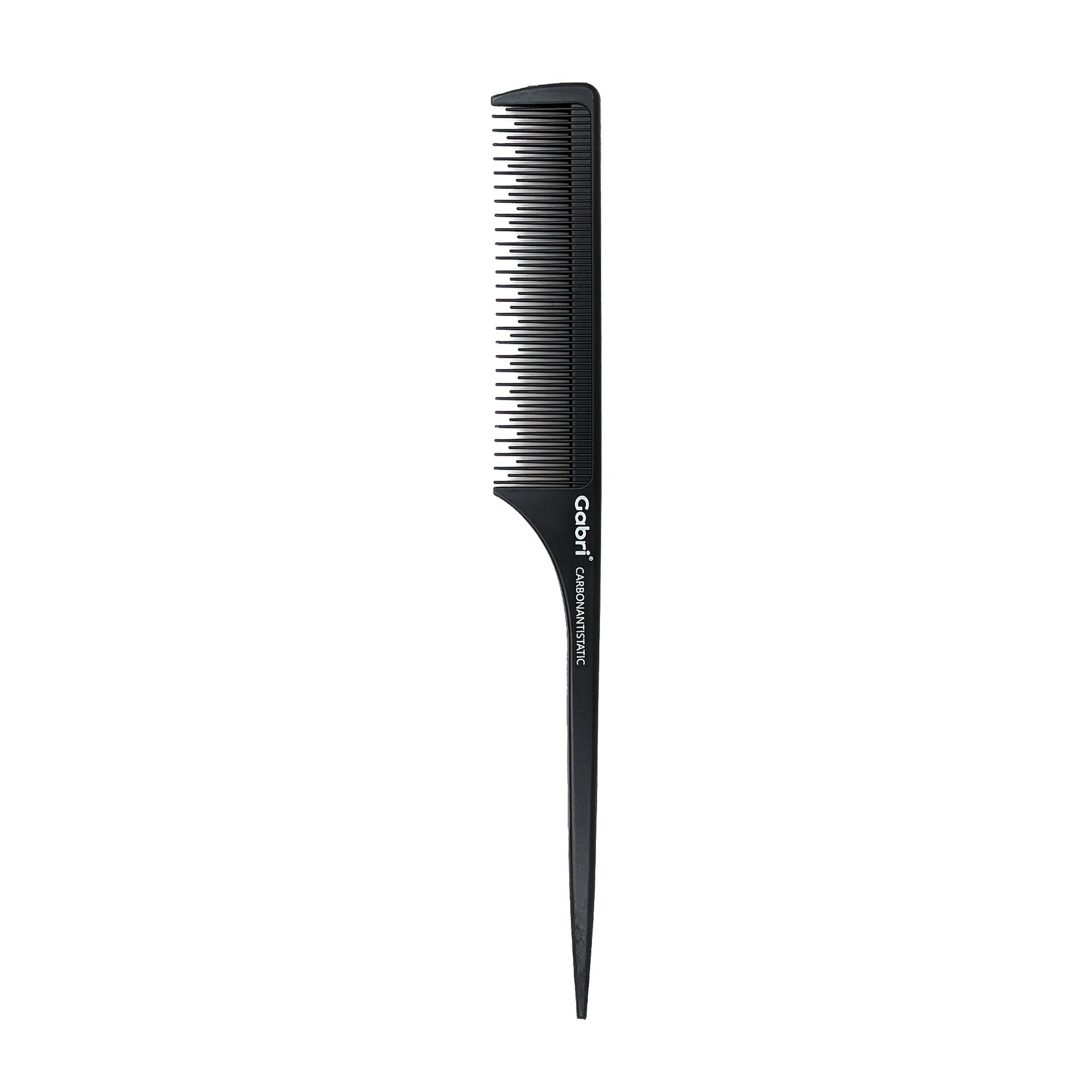 Achieve salon-quality precision with these professional-grade combs designed specifically for detailed styling, sectioning, and technical cutting work. The Gabri Pin Tail Collection offers multiple specialist models including the classic Fine Tooth designs (No.23, No.25, No.29), the volume-enhancing Tease variants (No.24, No.28, No.32, No.33), and the precision-focused Rat Pin Tail options (No.27, No.30, No.31)—all featuring the same exceptional carbon fibre construction with anti-static properties that prevent frizz and flyaways during styling. Each comb combines fine teeth for detailed work with a metal pin tail of varying lengths, providing the perfect tools for creating clean partings, precise sections, and intricate styling patterns. The heat-resistant properties make these combs ideal companions for blow-drying, straightening, and other heat styling techniques, allowing you to work confidently near hot tools without warping or damage.