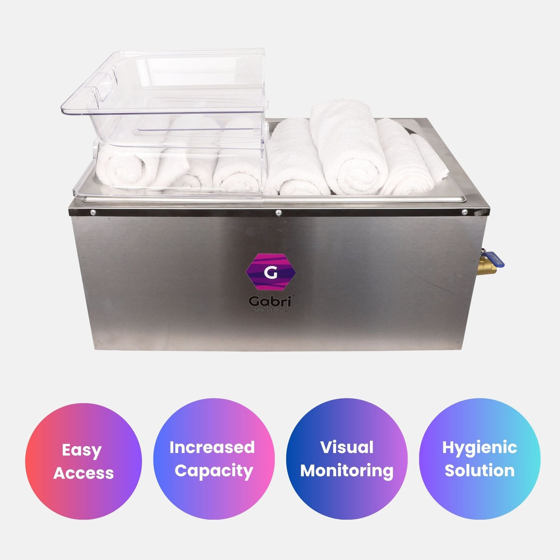 - Crystal-clear visibility enables staff to monitor towel levels without opening the unit, maintaining optimal internal temperature.