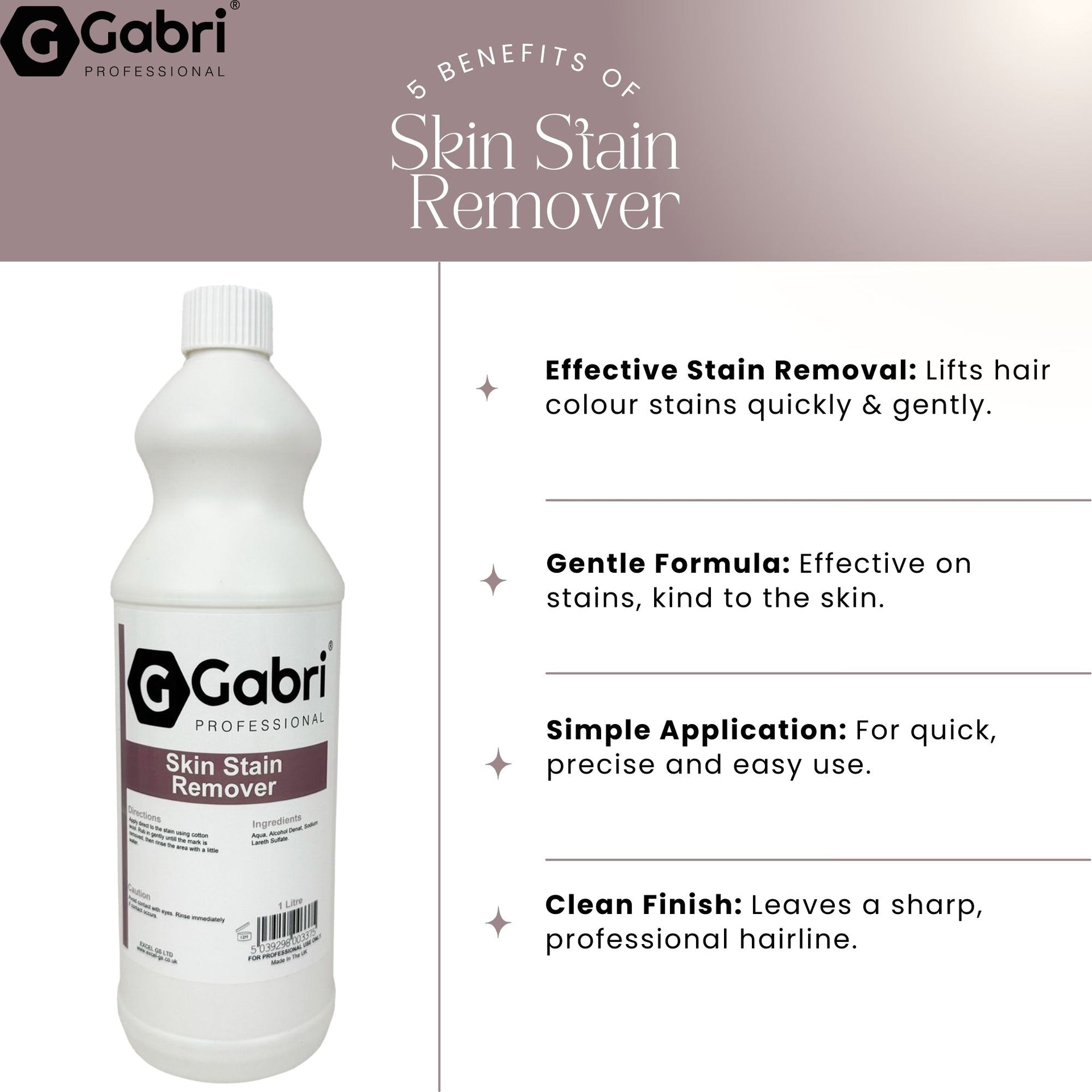 Maintain professional standards with the Gabri Professional Skin Stain Remover, a specially formulated solution designed to effectively remove hair colour stains from skin. The gentle yet powerful formula works quickly to break down and lift colour residue without causing irritation. This professional-grade product features a precise application system that allows for targeted stain removal, making it an essential tool for maintaining client comfort and satisfaction during colour services. The generous 1000ml size ensures ample product for busy salon environments, whilst the balanced formulation provides reliable results every time.