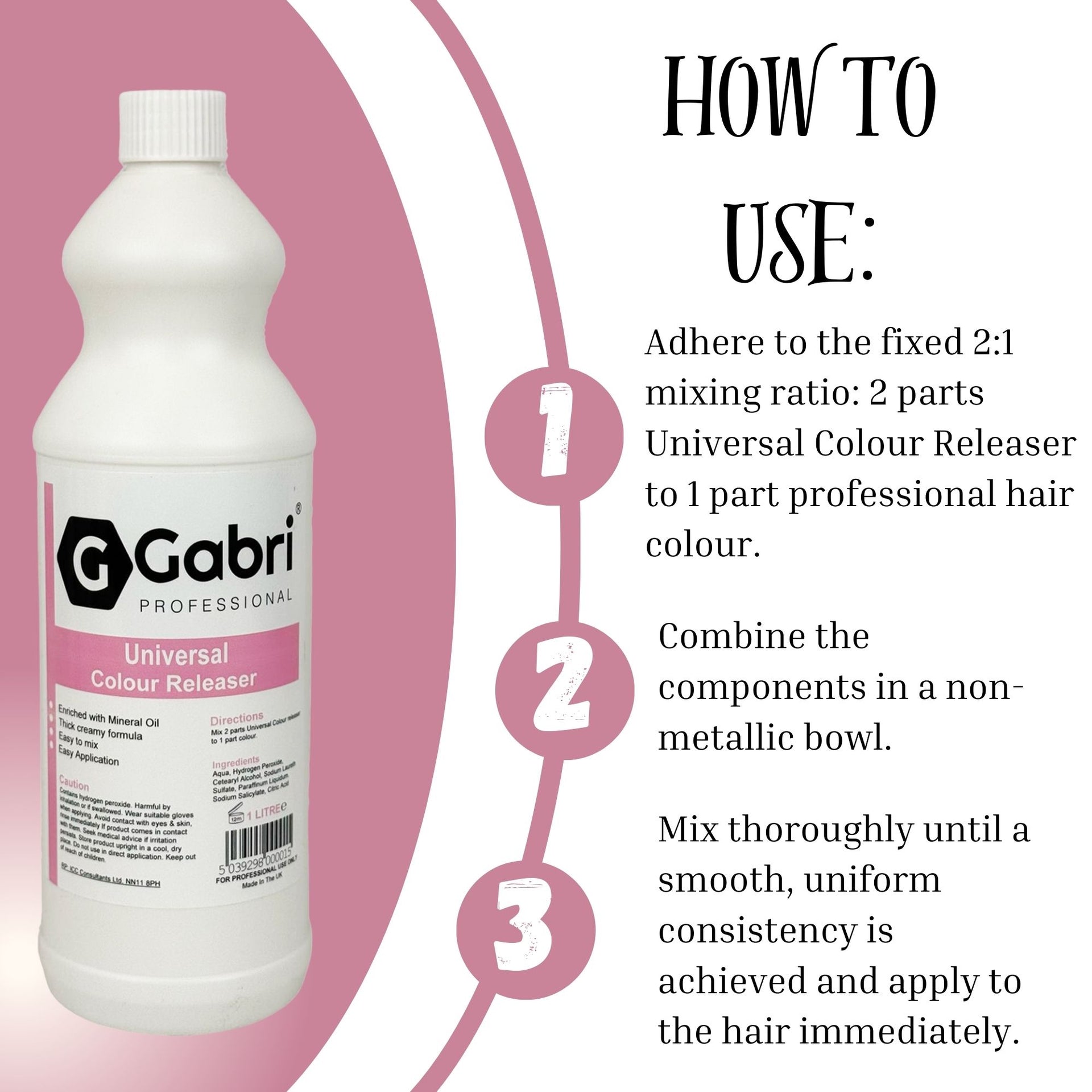 Transform your colour services with the Gabri Professional Universal Colour Releaser, a premium-grade developer formulated for consistent, reliable results. The rich, creamy formula ensures smooth blending and even distribution, making it the perfect partner for all professional colour applications. This professional-strength developer features a carefully balanced 2:1 mixing ratio that delivers predictable processing times and dependable results. The generous 1000ml size is ideal for busy salons, whilst the stabilised peroxide formula ensures consistent strength throughout use.