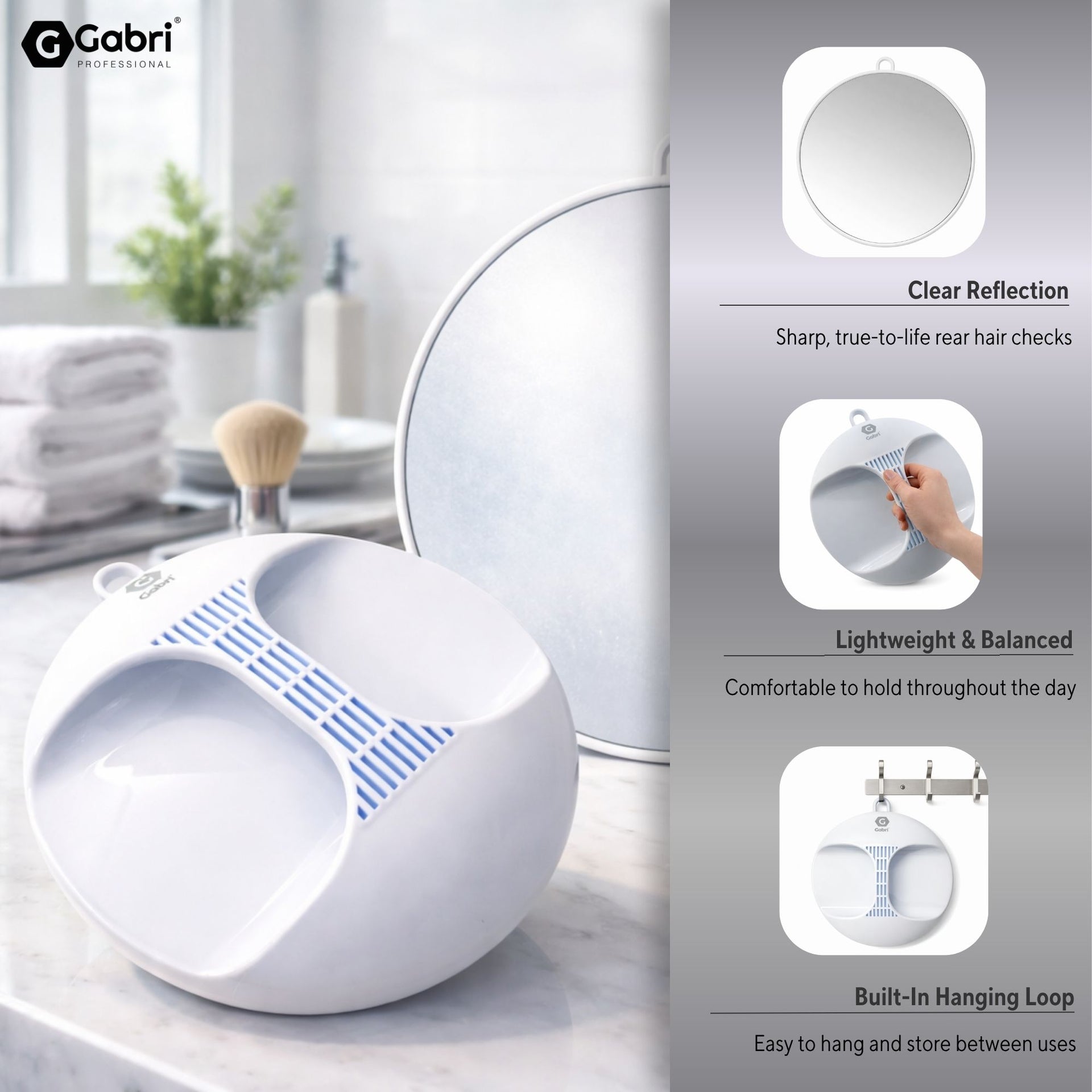 Gabri - Salon Mirror Round Handheld & Wall White 28cm is designed to give clients a clear, full view of the back and sides of their finished hairstyle. With its 28cm round mirror face, it is ideal for salons and barbershops that want to present every cut, fade or style with confidence. The mirror provides a sharp, true-to-life reflection for more professional final checks and client consultations. Its white finish gives it a bright, clean look that suits modern salon interiors beautifully. The lightweight construction makes it easy to hold throughout the day without unnecessary strain. Built for regular professional use, it offers a practical balance of comfort, presentation and durability. It is a reliable and professional choice for stylists who want a salon mirror that looks smart and performs well every day.