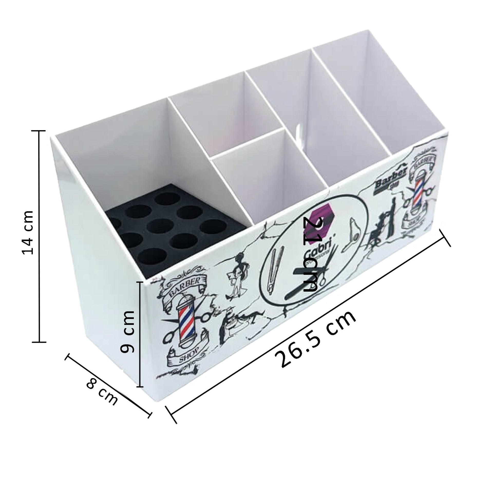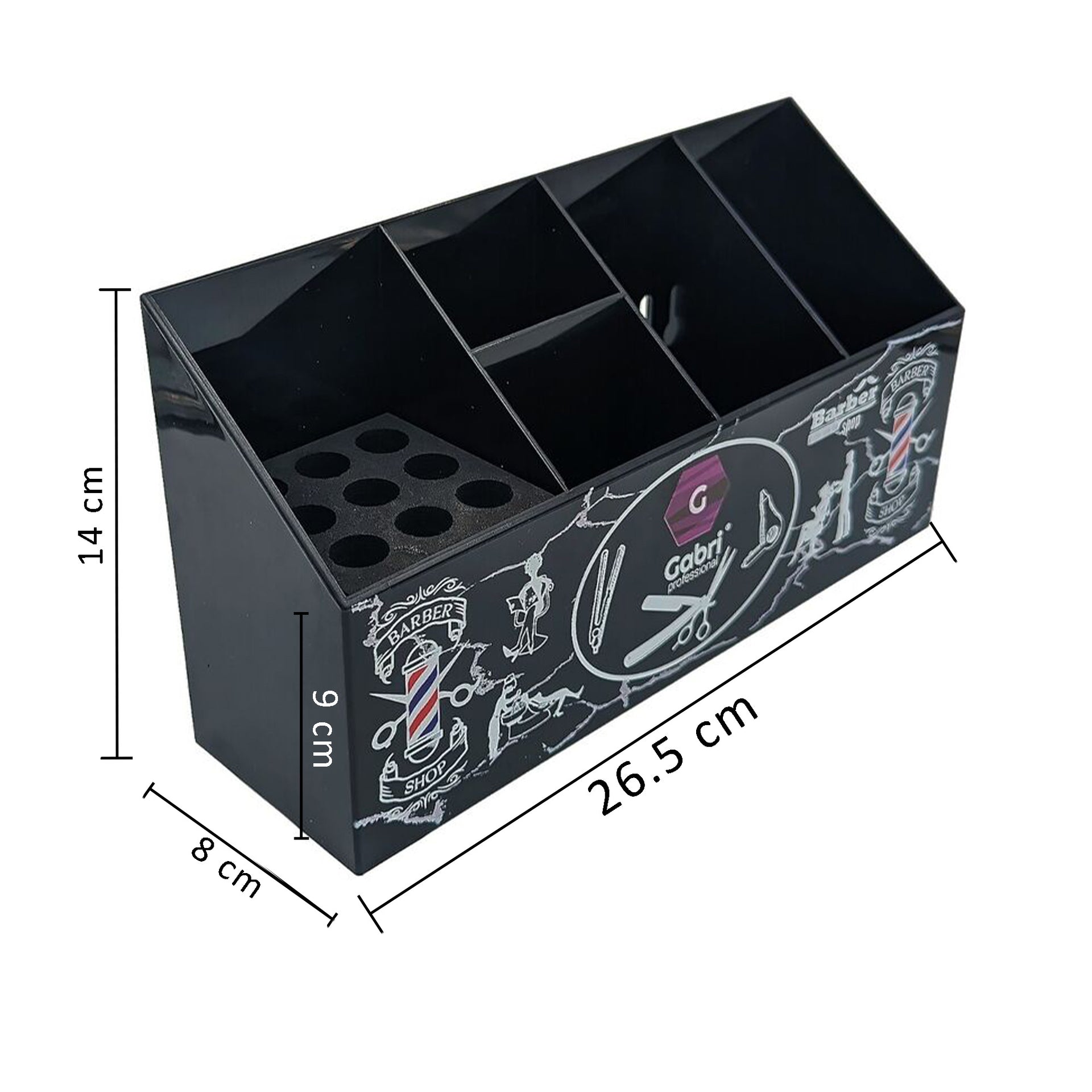 Perfect for professional barbers, hairstylists, and beauty salons seeking to optimise workspace efficiency whilst maintaining a stylish, organised appearance. Also excellent for home barbers and DIY haircutters who want to keep their tools professionally organised and readily accessible.