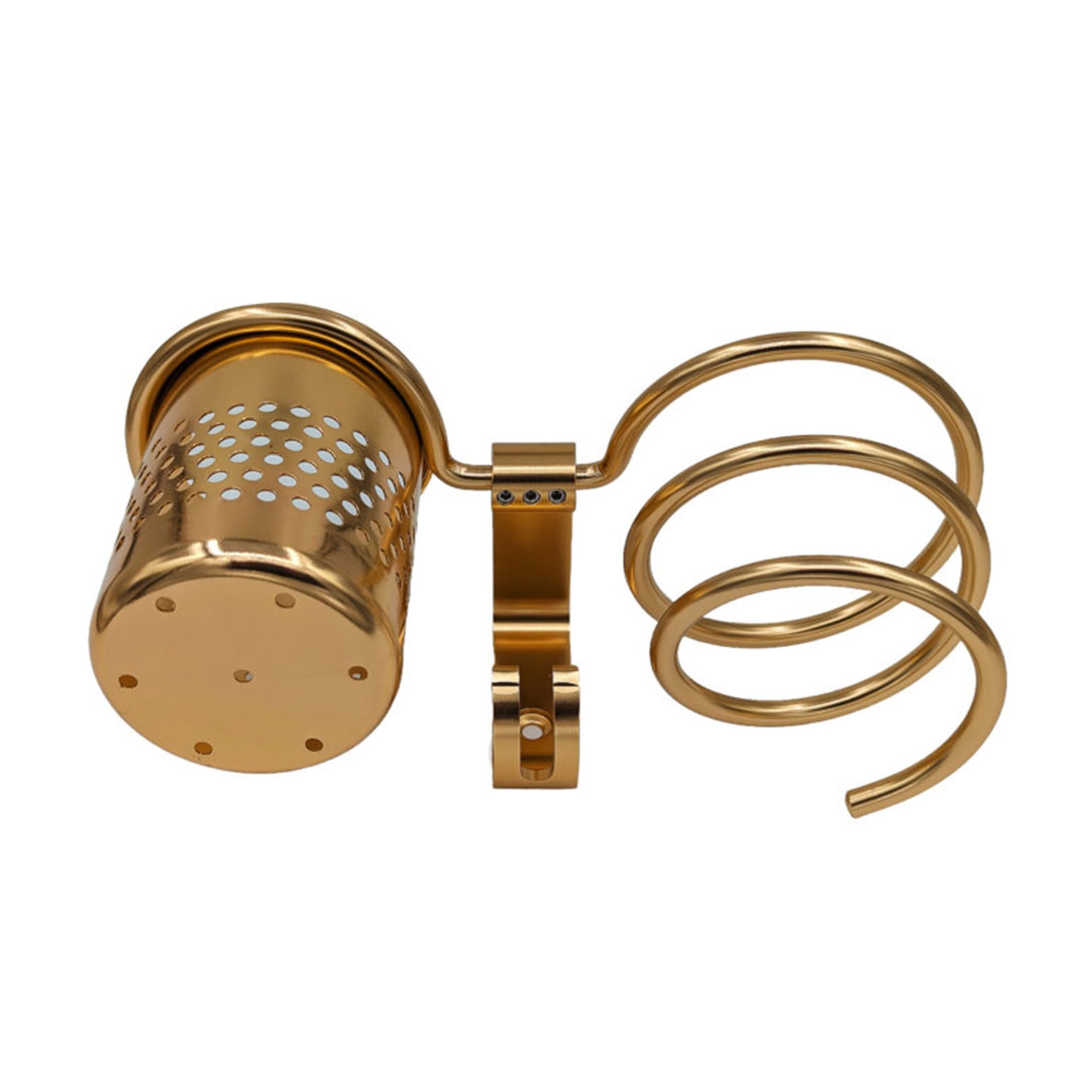 Crafted from aerospace-grade aluminium, the robust construction ensures lasting durability and reliable performance. The thoughtfully designed spiral holder securely cradles your hairdryer, while the removable storage cup provides convenient storage for brushes, combs, and styling essentials. Transform your styling space with this essential professional organiser.