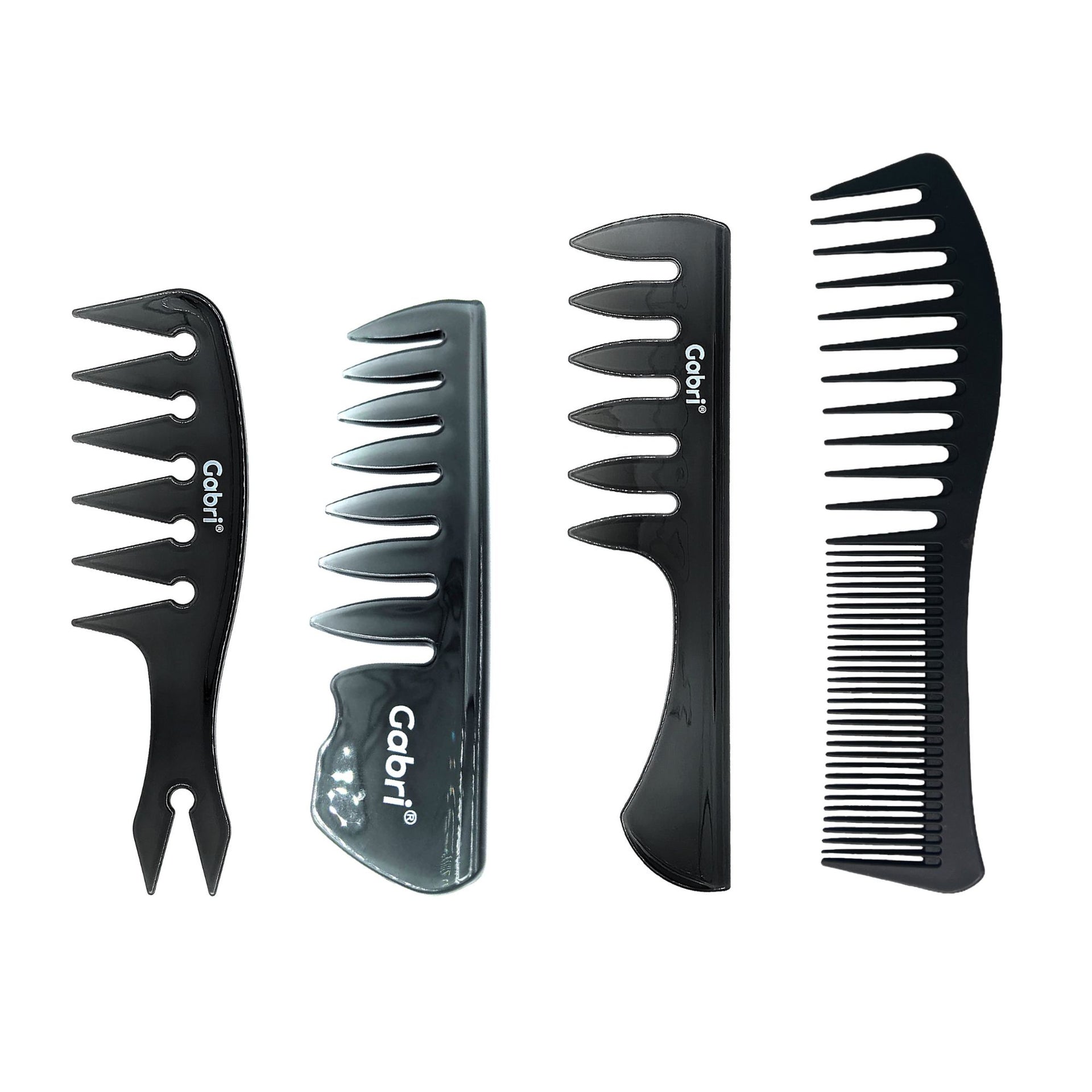 Transform your styling routine with these specialised wide-toothed combs designed to glide through hair without causing damage or discomfort. The Gabri Wide Toothed Collection offers four distinct styling solutions: the professional Long Handled Wide Toothed (No.212) with its generous 18cm reach, the versatile Fine & Wide Tooth (No.34) that combines two essential comb types in one 21cm tool, the compact Wide Toothed Oil Head (No.60814) with its ergonomic finger grip, and the unique Double Inserted Wide Tooth Fantail (No.213) that delivers both style and function in a convenient 15cm design. Each comb features specially spaced wide teeth that effectively detangle without snagging or pulling, making them particularly valuable for those with thick, curly, or tangle-prone hair. The anti-static properties prevent frizz and flyaways during styling, whilst the rounded, polished teeth ensure gentle contact with the scalp to minimise irritation.