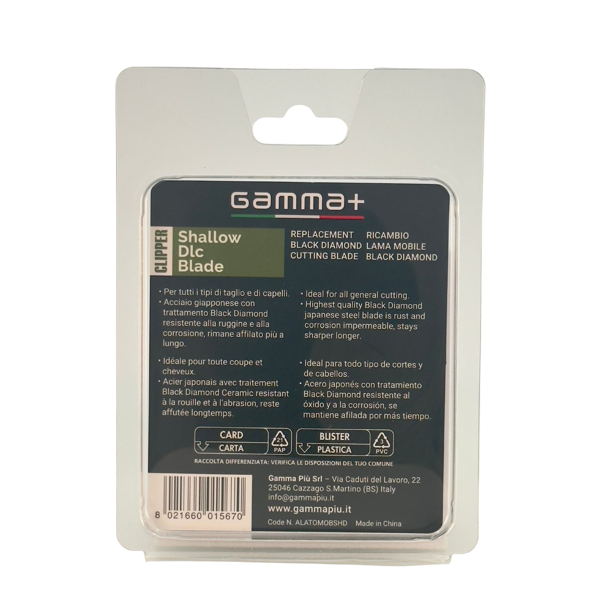 The Gamma+ Shallow DLC Black Diamond Cutting Blade offers exceptional cutting performance, making it a top choice for professional barbers and stylists. Crafted from premium Black Diamond Carbon, this blade remains cooler during use and is resistant to rust, ensuring long-lasting sharpness and durability. Its shallow design, combined with super-sharp tips, allows for precise cuts, while the lightweight and slim structure enables faster blade movement for greater efficiency. This blade fits all Gamma+ and Stylecraft clippers, making it versatile and adaptable to your existing tools. With fewer blade changes required, this cutting blade is both time-saving and cost-effective, perfect for professionals who need reliable performance day in and day out. Engineered and designed in Italy, the Gamma+ Shallow DLC Blade offers the highest quality and craftsmanship, ensuring consistent, high-quality results. Whether you’re cutting hair in a high-paced salon or at home, this blade guarantees a smooth, flawless finish every time.