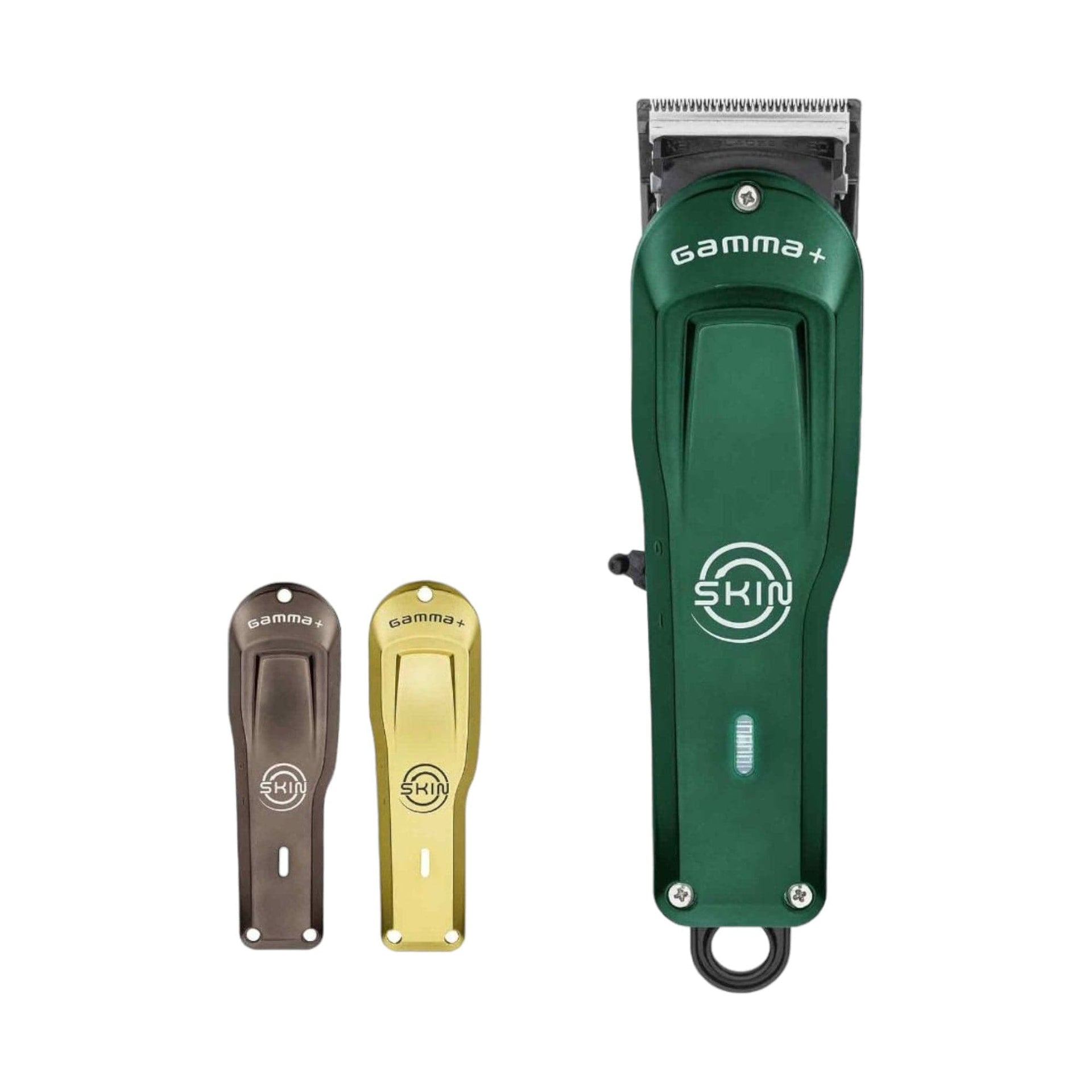 The Gamma+ Skin Balding Clipper is a cutting-edge tool designed for barbers seeking high performance and precision. Powered by a super torque rotary motor running at 7,200 RPM, this clipper is ideal for bulk hair removal and balding, offering exceptional power for the toughest cuts. Fitted with a zero-gap adjustable Black Diamond Carbon blade, the clipper delivers a smooth, close finish, making it perfect for sharp outlines and detailed work. The clipper offers a 3-hour cordless runtime, ensuring long-lasting performance without the need for frequent charging, and it can be quickly recharged in just 150 minutes via the included charging dock or USB-C cable. The ergonomic design features an easy-grip handle, ensuring comfort during extended use, while the interchangeable matte bronze, gold, and green skins allow you to customise the look of your clipper to suit your style. This versatile clipper is approved by professional barber Taylor Cutz, ensuring it meets the high standards of the industry. Whether you're performing detailed edging or bulk hair removal, the Gamma+ Skin Clipper provides the power and precision you need.