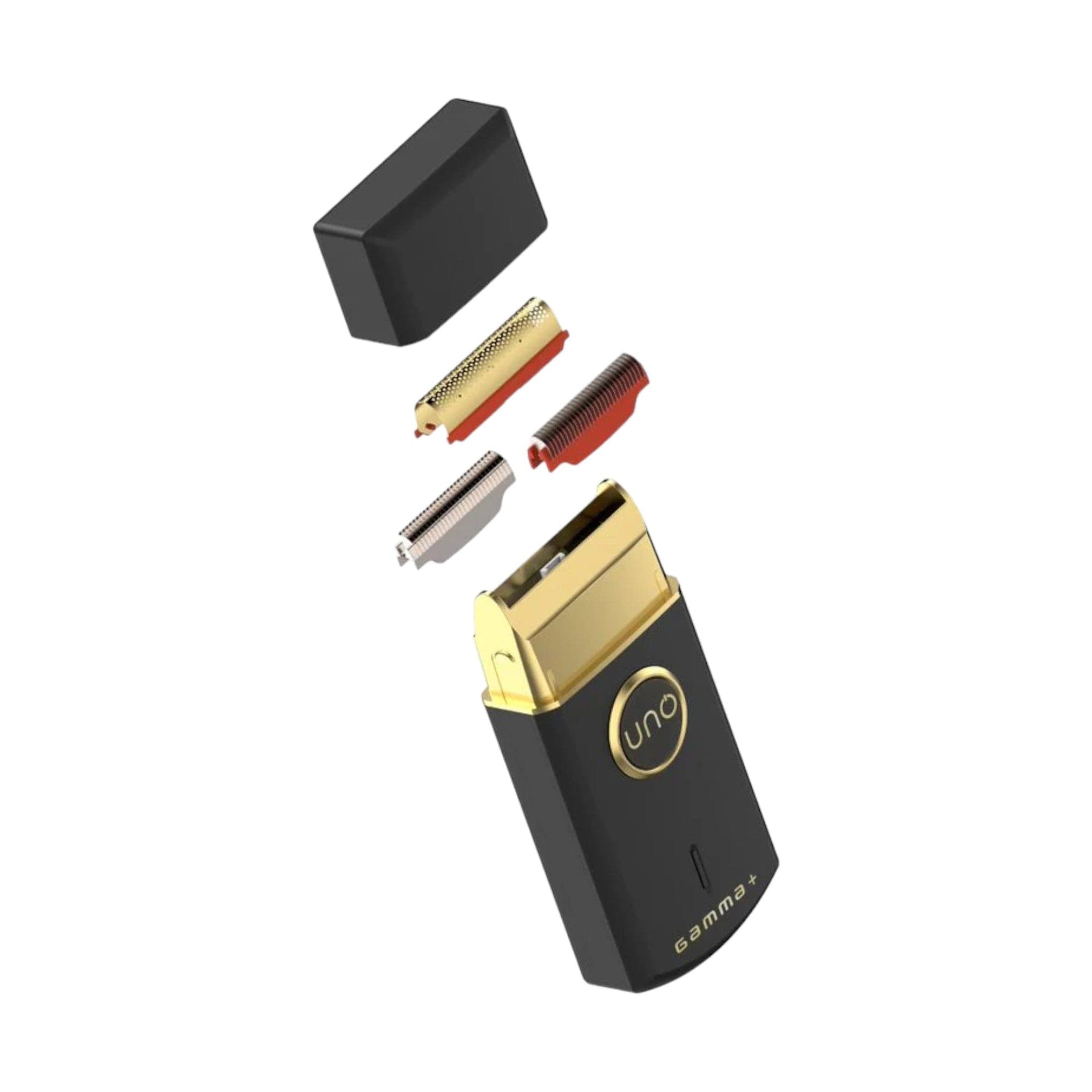 The Gamma+ Uno Professional Mobile Single Foil Shaver delivers an ultra-close shave while protecting even the most sensitive skin from irritation, razor bumps, and ingrown hairs. Powered by a supercharged motor running at 9,000 RPM, this shaver ensures a smooth, drag-free performance, making it ideal for barbers and stylists seeking precision. Its sleek and shockingly lightweight design, at just 90 grams, offers unmatched portability and convenience, making it perfect for use on the go or in the shop. The ergonomic, pocket-sized design ensures a comfortable grip, allowing for precision control during use. Equipped with both forged and crunchy cutters, the Gamma+ Uno provides increased cutting power and a guided cutting experience for a flawless finish. The hypo-allergenic gold titanium foils are designed to be gentle on sensitive skin, ensuring irritation-free shaving. Whether you're performing intricate detailing or achieving zero finishes, this shaver is a must-have for any professional barber.