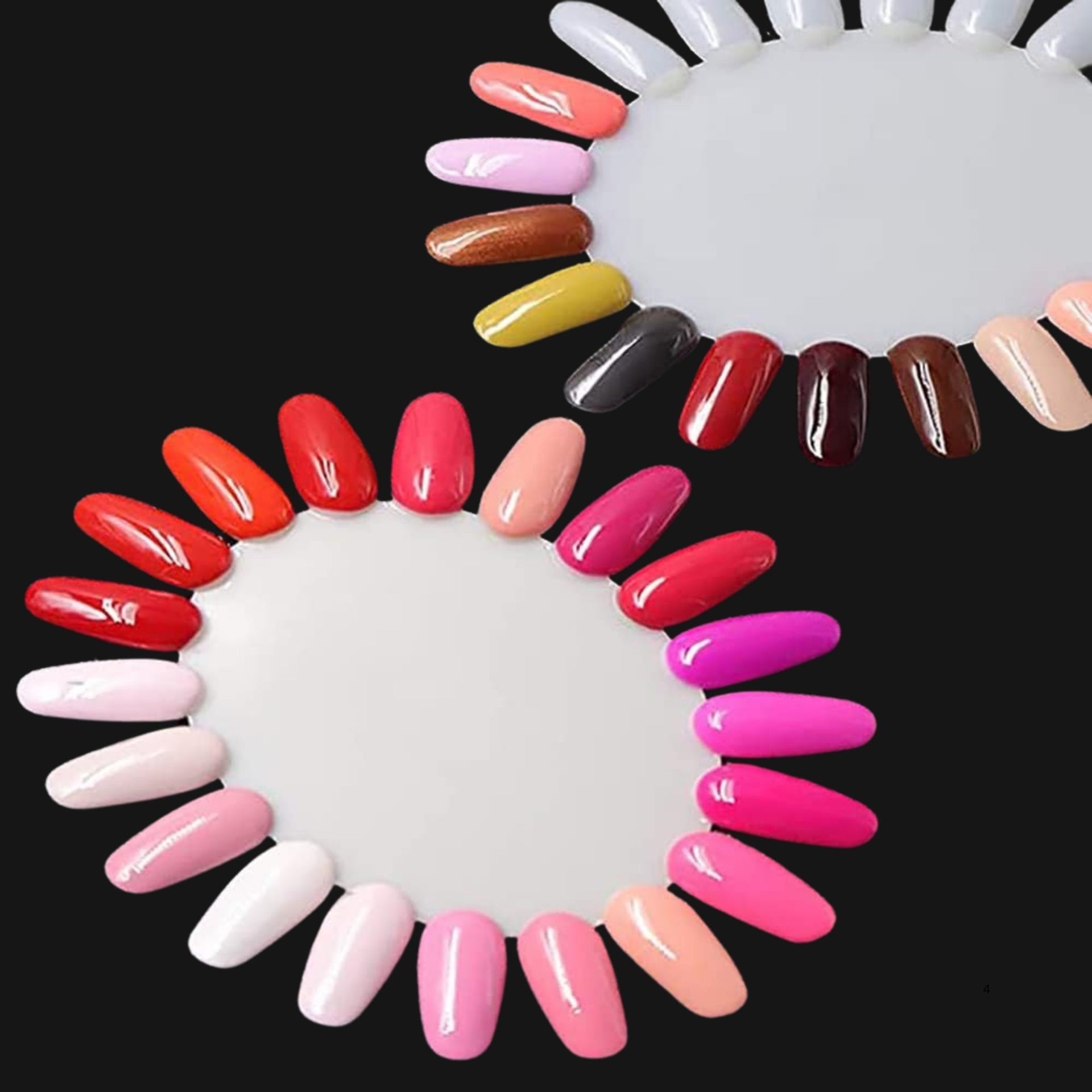 Beyond colour presentation, the Gelluv Nail Display Wheels serve as invaluable practice surfaces for nail technicians perfecting new techniques, experimenting with nail art designs, or evaluating product performance without requiring a model. The sturdy construction ensures these wheels maintain their appearance even after repeated handling, making them a long-lasting investment for busy professionals. Their compact, stackable design requires minimal storage space whilst allowing maximum visual impact, addressing the practical needs of both established salons and mobile technicians with limited space. Each wheel's ergonomic design makes them comfortable to hold during consultations, while the clear layout enables quick identification of specific colours or designs, streamlining the selection process for both technician and client. Whether used for showcasing your latest gel polish collection, practising intricate nail art techniques, or creating seasonal display wheels to highlight upcoming trends, these versatile tools enhance professionalism whilst improving service efficiency – making them an indispensable addition to any serious nail professional's toolkit.