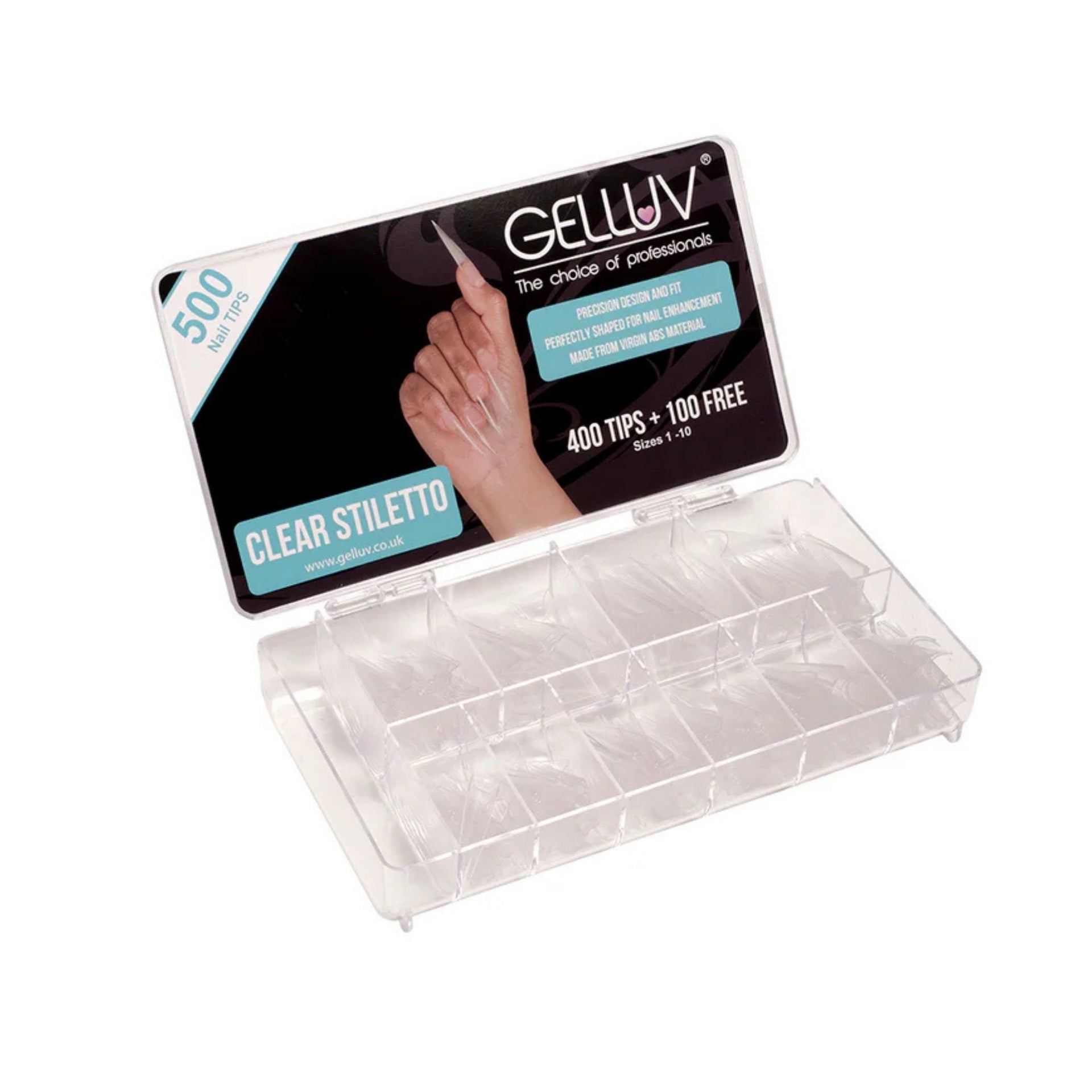 The crystal clear finish of the Gelluv - Stiletto Clear Nail Tips 1-10 Sizes 500pcs makes them the ideal canvas for all your creative nail art designs, including encapsulation and intricate painting. This professional bumper pack contains 500 individual tips, conveniently sorted into 10 different sizes to ensure you always have the perfect fit for every client. They provide a stunning foundation for all nail enhancement systems, including gel and acrylic. They are the ultimate foundation for creating show-stopping stiletto nails.