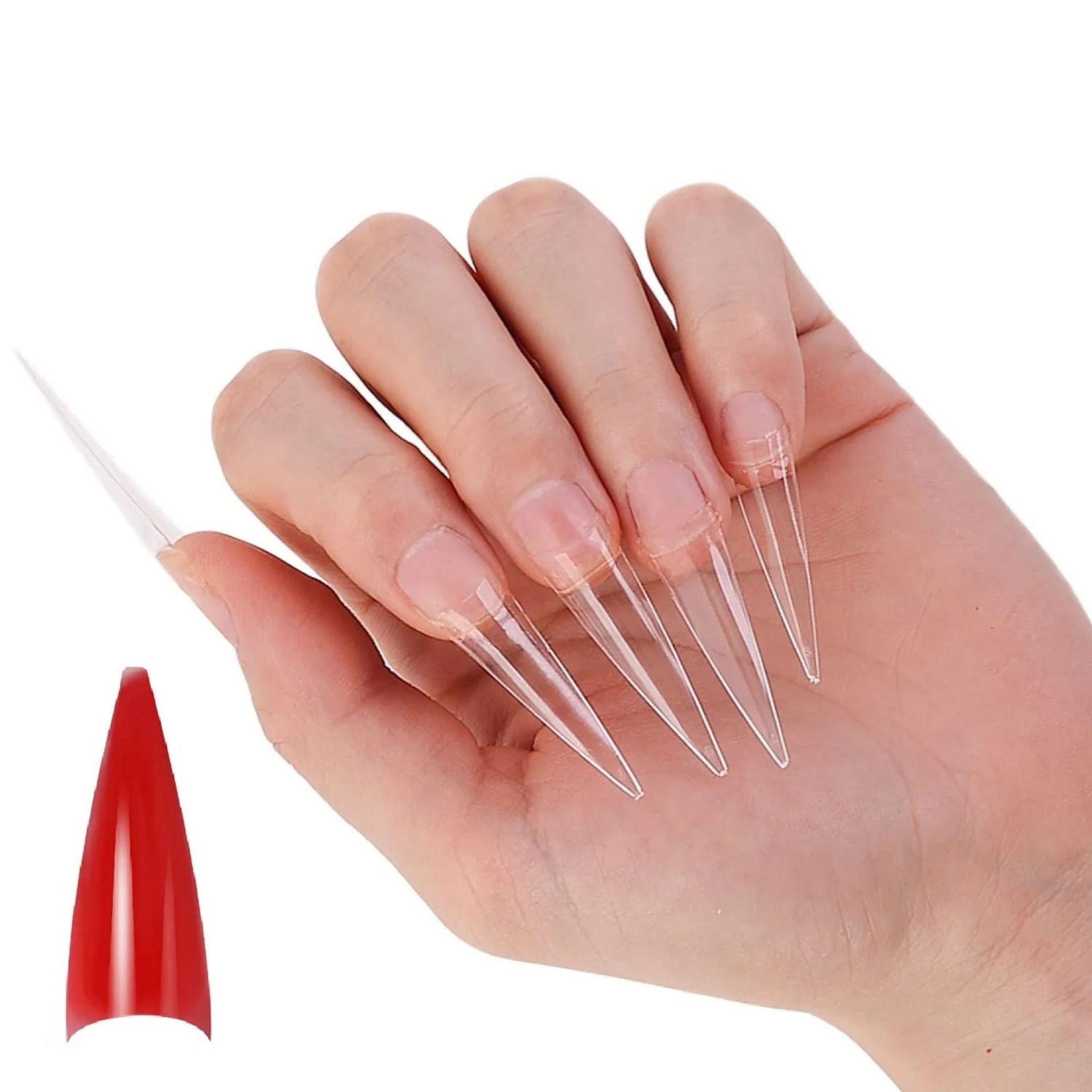 - Pre-shaped with an extreme point to create the perfect stiletto nail look instantly.