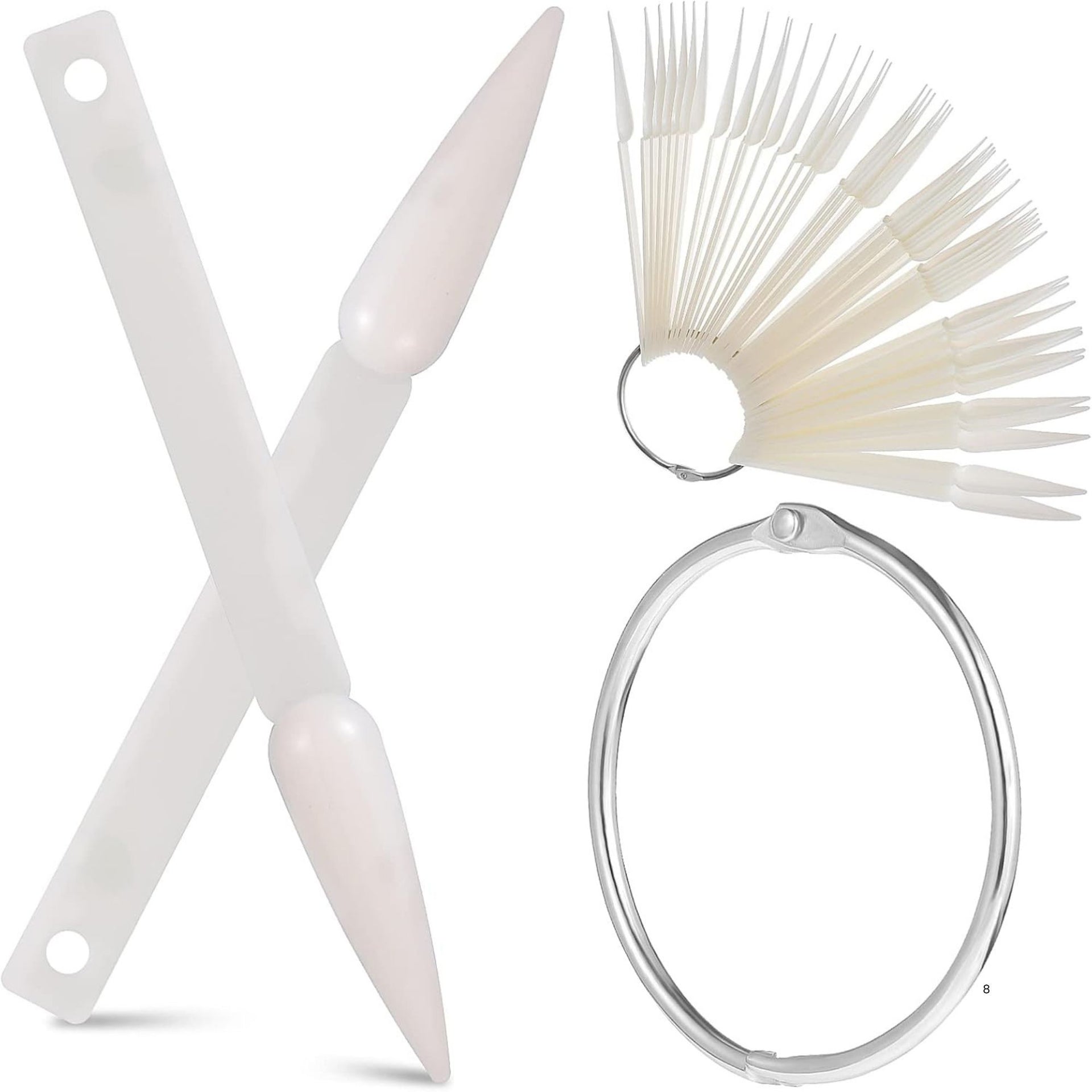 - Set includes 50 stiletto-shaped nail pops arranged on a sturdy metal ring for convenient organisation and presentation.