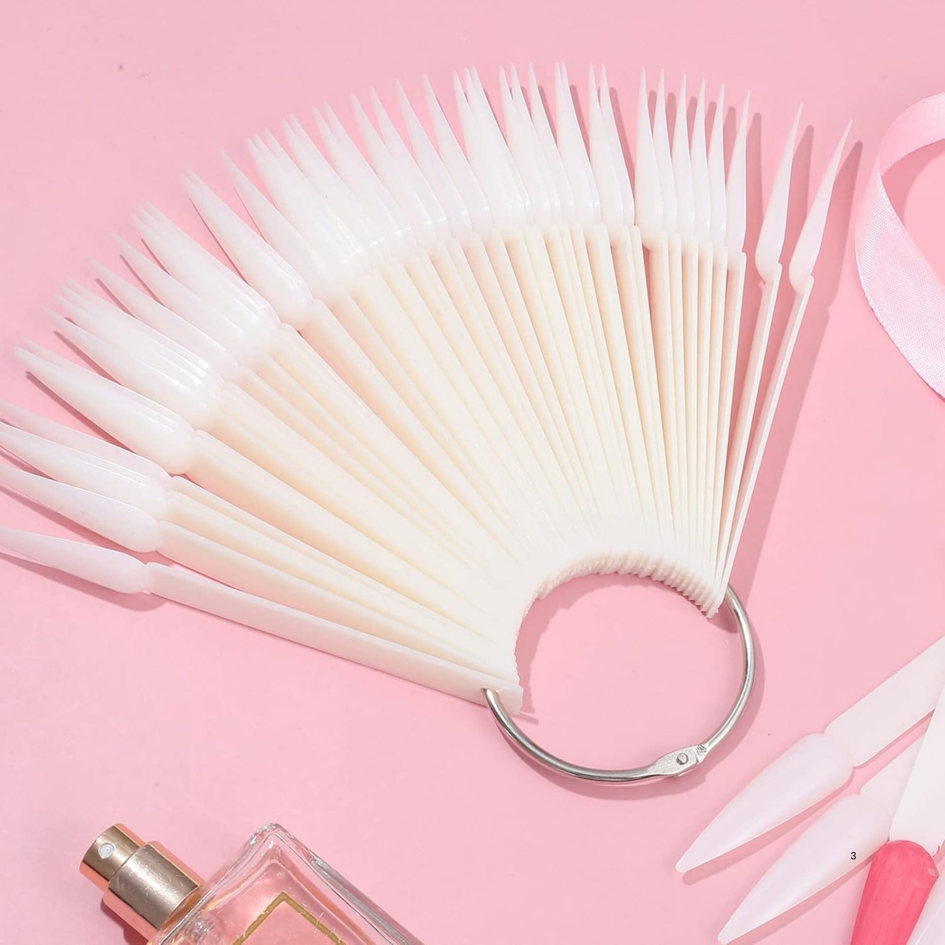 The Gelluv Stiletto Nail Pops offer a professional solution for nail technicians and salon owners seeking to showcase their colour range with maximum impact and minimal effort. This comprehensive set features 50 plain stiletto-shaped tips arranged on a durable metal ring, allowing for effortless flipping and convenient colour presentation during client consultations. Each nail pop provides the perfect canvas for displaying your gel polishes, nail lacquers, or nail art designs, enabling clients to visualise their desired look before committing to a service. The distinctive stiletto shape offers a particularly elegant presentation format that highlights how colours appear on this popular nail extension style, giving clients an accurate representation of the finished result. Unlike flat colour charts, these three-dimensional displays demonstrate how colours interact with light and shadow on an actual nail shape, ensuring clients make informed choices that match their expectations.