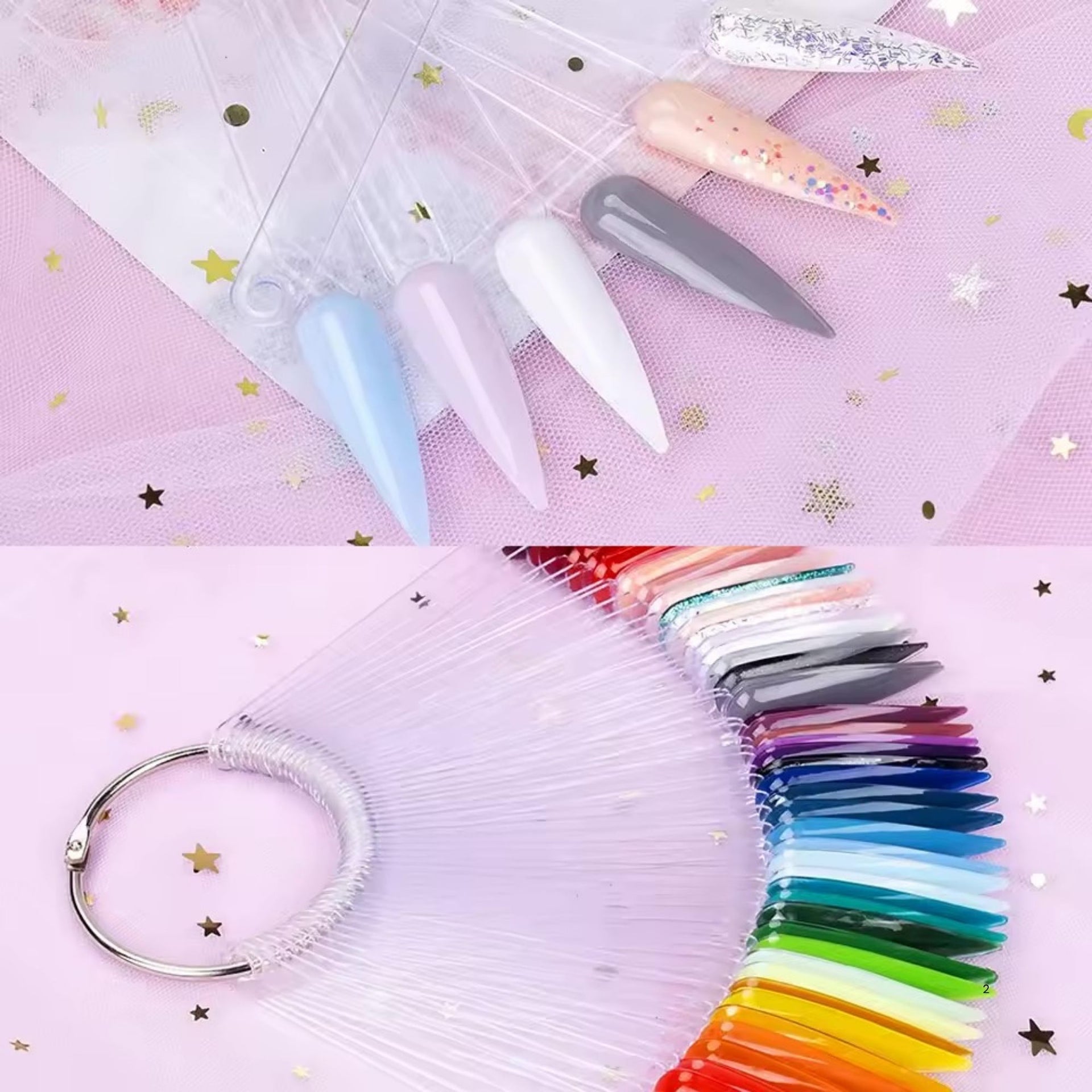 Perfect for professional nail technicians, salon owners, and mobile manicurists seeking to showcase their colour range in an organised, professional manner. Particularly valuable for nail artists specialising in stiletto extensions who want to demonstrate how colours appear on this specific nail shape.