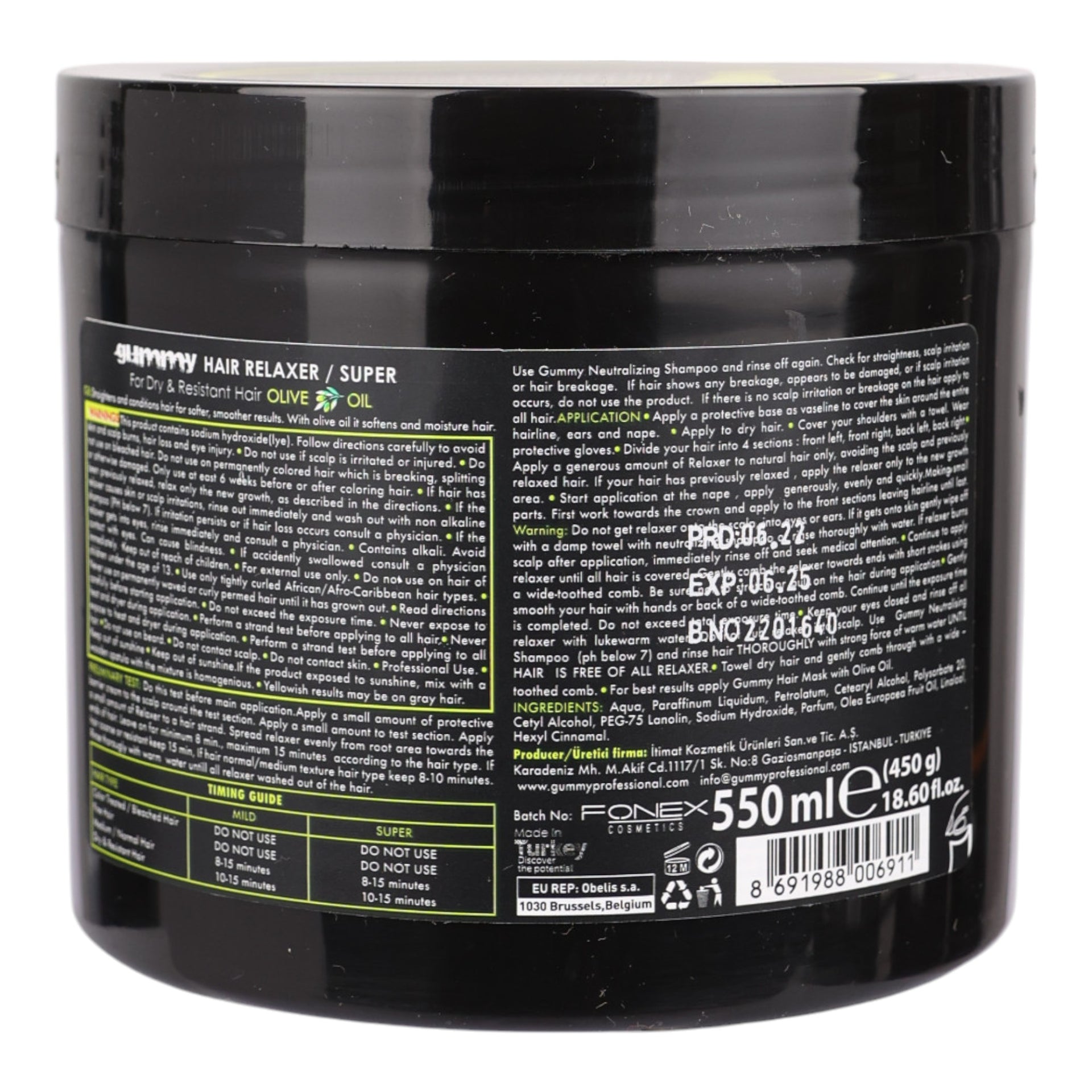 Introducing the Gummy Hair Relaxer Super Olive Oil 550ml, a revolutionary hair care solution that combines the power of a professional relaxer with the nourishing benefits of olive oil. This advanced formula is designed to straighten even the most stubborn curls and kinks, while deeply hydrating and protecting your hair. The addition of olive oil ensures that each strand is moisturised from within, preventing the dryness typically associated with chemical relaxers. With this product, you can achieve sleek, smooth, and shiny hair, all while maintaining the health and vitality of your locks.