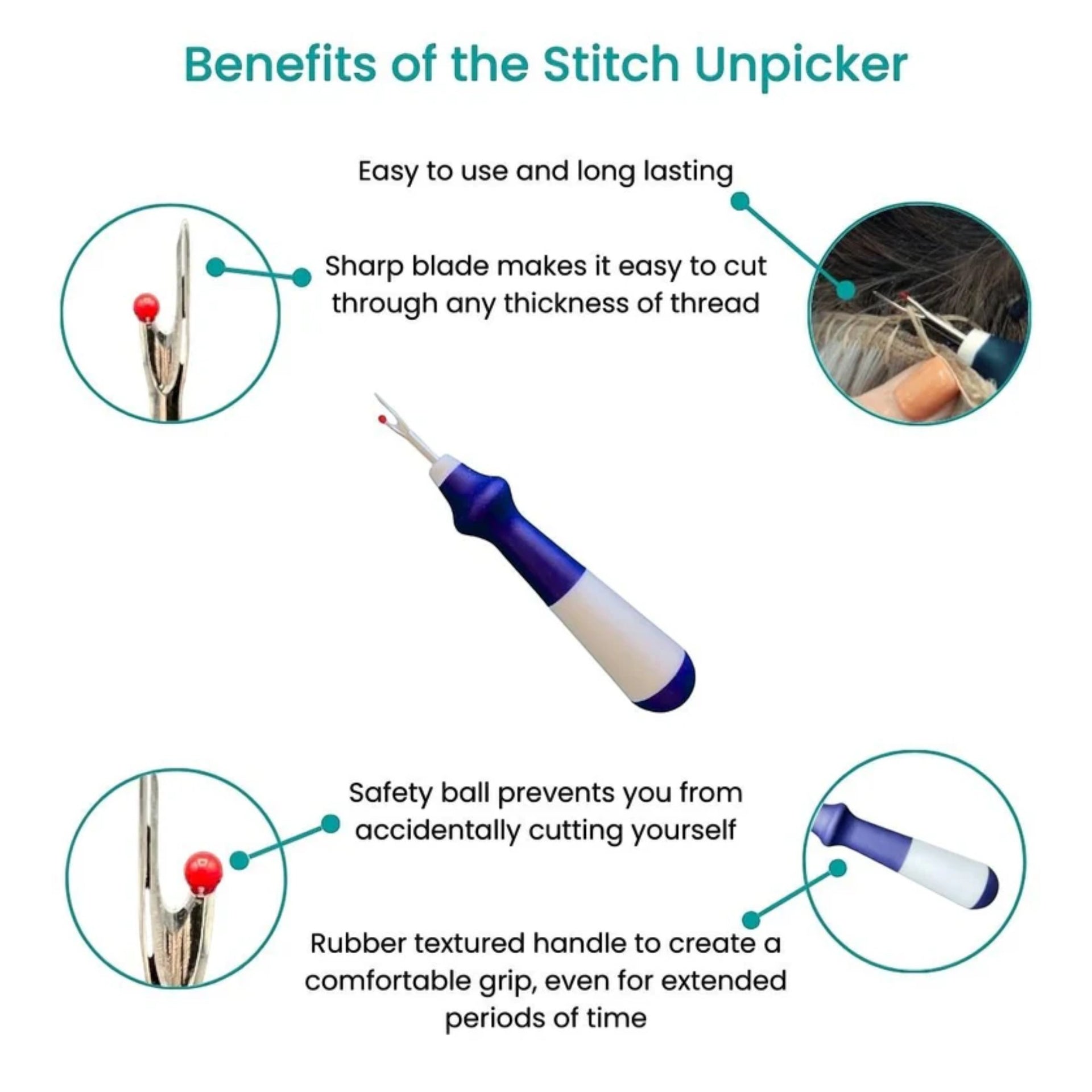 The Hair Made Easi Stitch Unpicker delivers professional precision and safety for effortless thread removal in hair extension maintenance and removal. This specialist tool features a meticulously sharpened blade with an innovative safety ball tip that allows you to cut through even the toughest threading without risking damage to the client's natural hair or scalp. The ergonomically designed handle combines a comfortable grip with perfect balance, reducing hand fatigue during detailed removal sessions and ensuring you maintain complete control throughout the process. Unlike standard seam rippers that can snag or damage delicate hair, this purpose-designed unpicker glides smoothly through extension threads, significantly reducing removal time whilst maintaining client comfort and hair integrity.