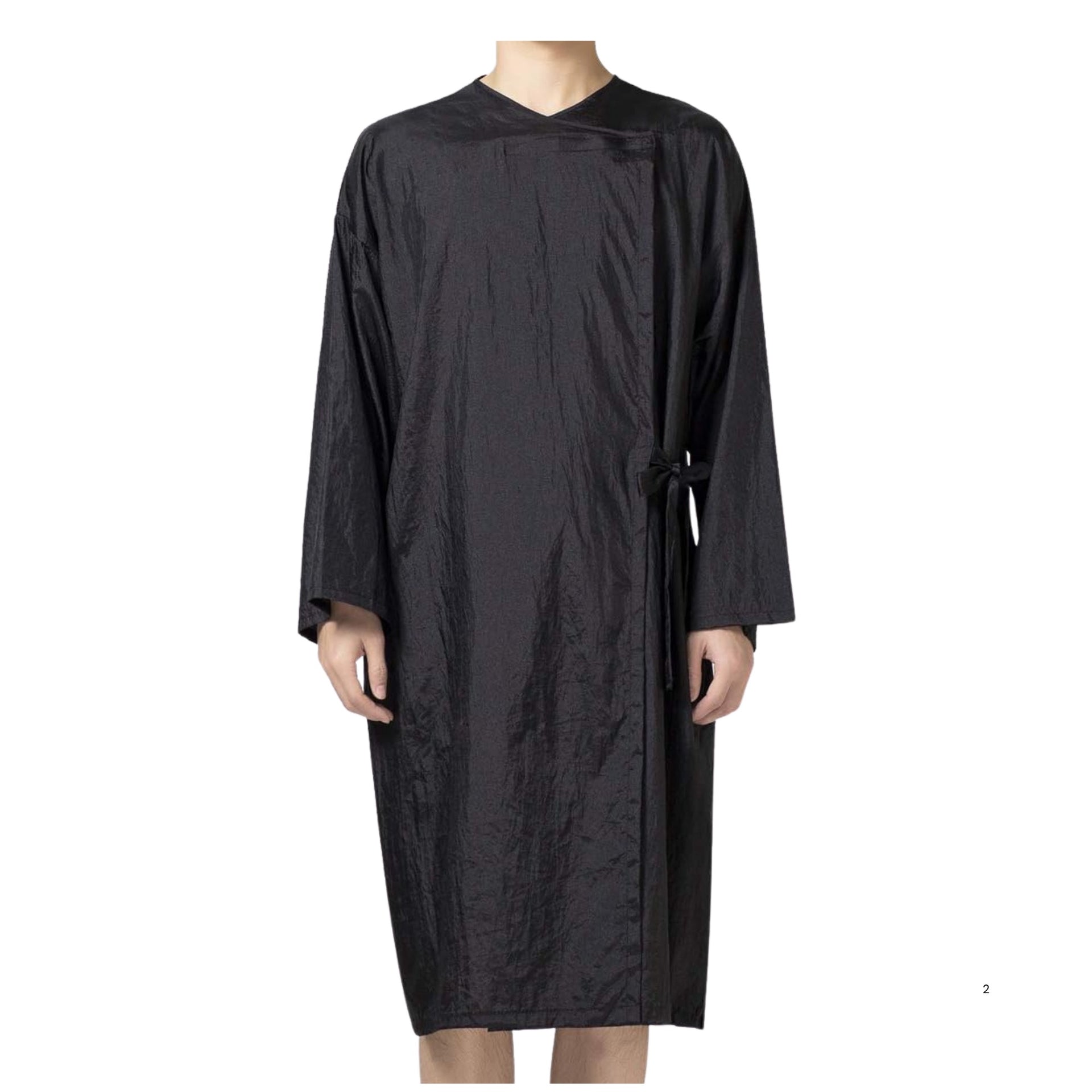 The Hair Tools Barber Hairdressing Kimono Gown offers professional-grade protection for both clients and salon furniture during all cutting, colouring and styling services. Crafted from premium crinkle-finish nylon with a sophisticated sheen, this versatile black gown combines elegant aesthetics with practical functionality for the modern salon environment. The water-repellent properties ensure that liquids, dyes and styling products slide off rather than soak through, while the static-free composition prevents hair clippings from sticking to the surface, making clean-up significantly easier between clients. A thoughtfully designed front tie and cling fastening system allows for secure, adjustable closure that accommodates clients of various sizes without causing discomfort or restricted movement during longer appointments. The generous dimensions of 50cm x 120cm provide comprehensive coverage from shoulders to lap, ensuring complete protection throughout the service.