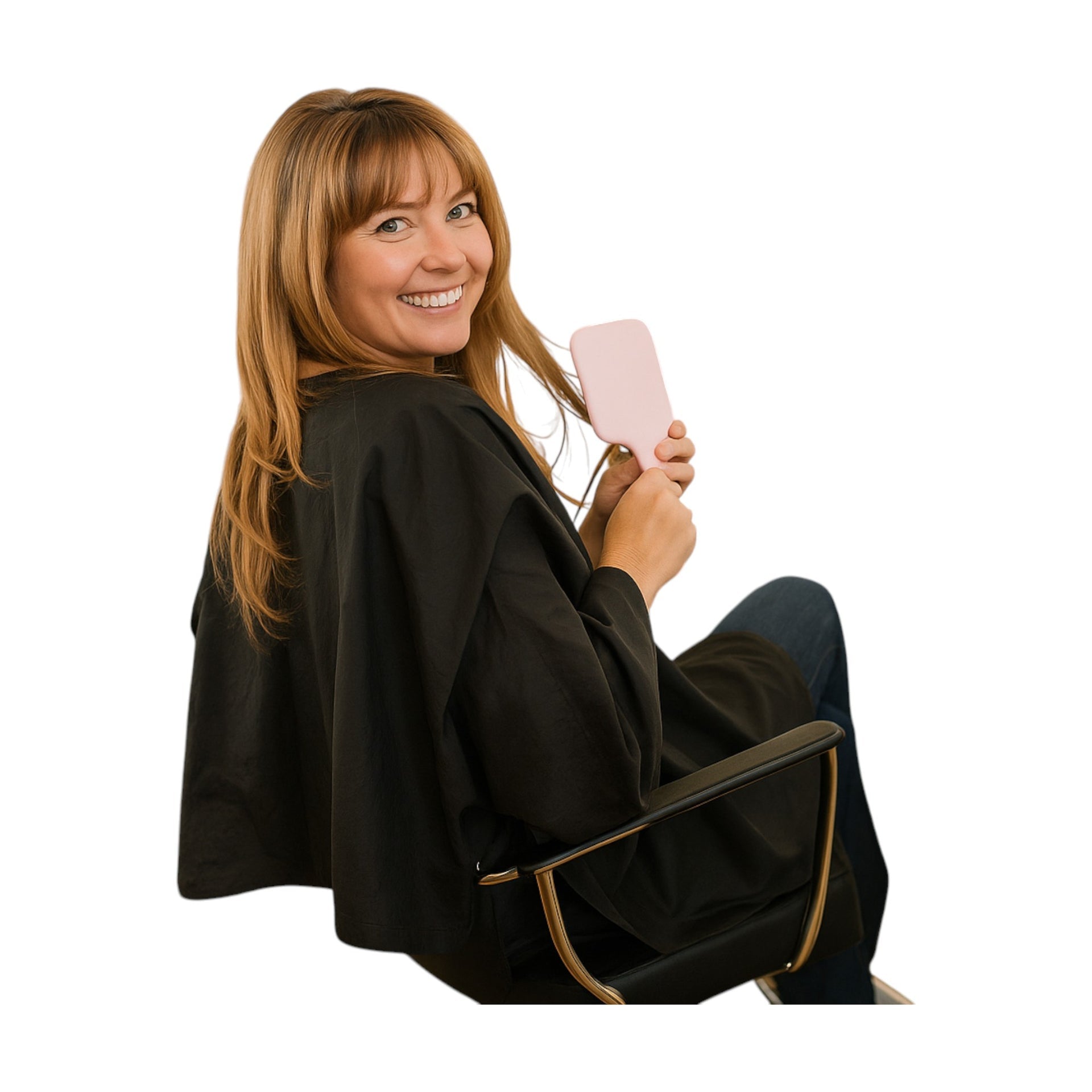 - Integrated chair protector extends behind the client to shield salon furniture from damage.