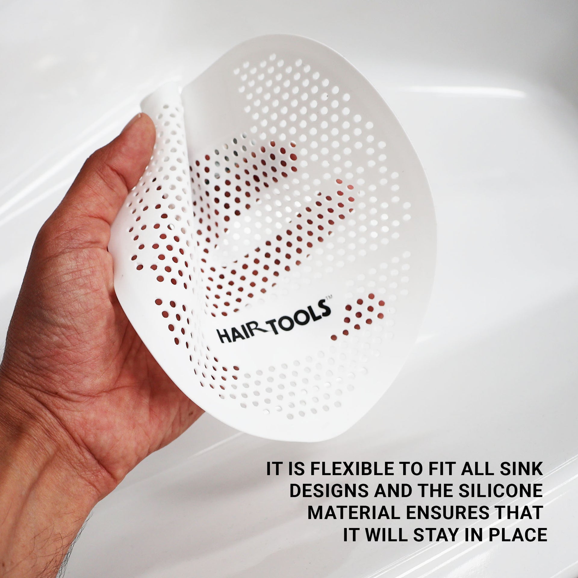 The Hair Tools Hair And Grime Trap is an essential accessory for any professional salon, barbershop, or hairdressing establishment, designed to keep your drains free from clogs caused by hair and debris. This innovative device is crafted from high-quality, flexible silicone, ensuring it easily adapts to various sink designs while providing secure placement. By effectively trapping hair and grime, it prevents build-up in your plumbing systems, thereby saving you both time and money on potential repairs. The trap is resistant to water, soap, and common hair care chemicals, making it a reliable and long-lasting solution for busy salon environments. Its universal size fits most standard sink drains, offering a versatile and practical addition to your salon toolkit.