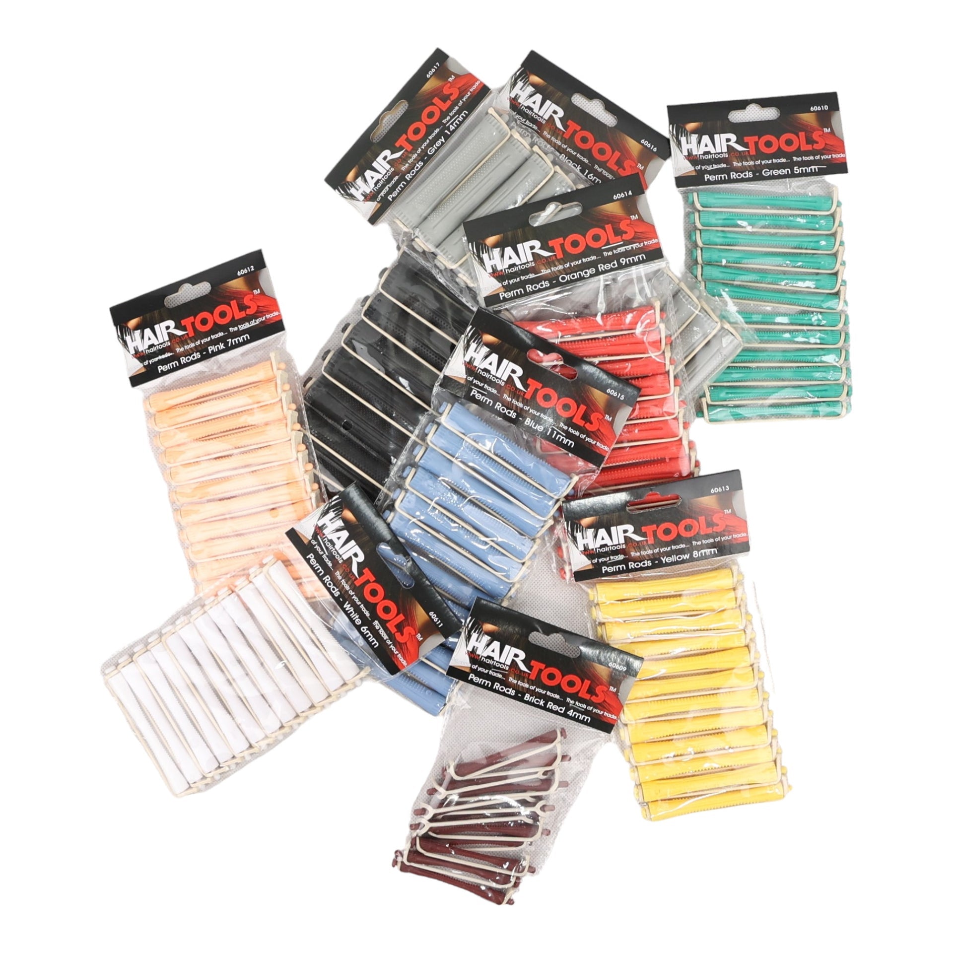 Hair Tools Perm Rods 12pcs offer a professional solution for creating beautiful, long-lasting curls and waves without the need for heat. These durable plastic rods are designed to deliver salon-quality results, making them an essential addition to any stylist's kit or home hairdressing collection. Available in sizes ranging from 4mm to 16mm, these perm rods cater to all hair types and lengths, allowing you to achieve tight, defined curls or looser, voluminous waves with ease. Each set includes 12 rods, ensuring you have the right tools at hand to create a variety of styles while maintaining your hair's health. The non-slip design ensures even, defined results every time, making these rods a reliable choice for achieving your desired look.
