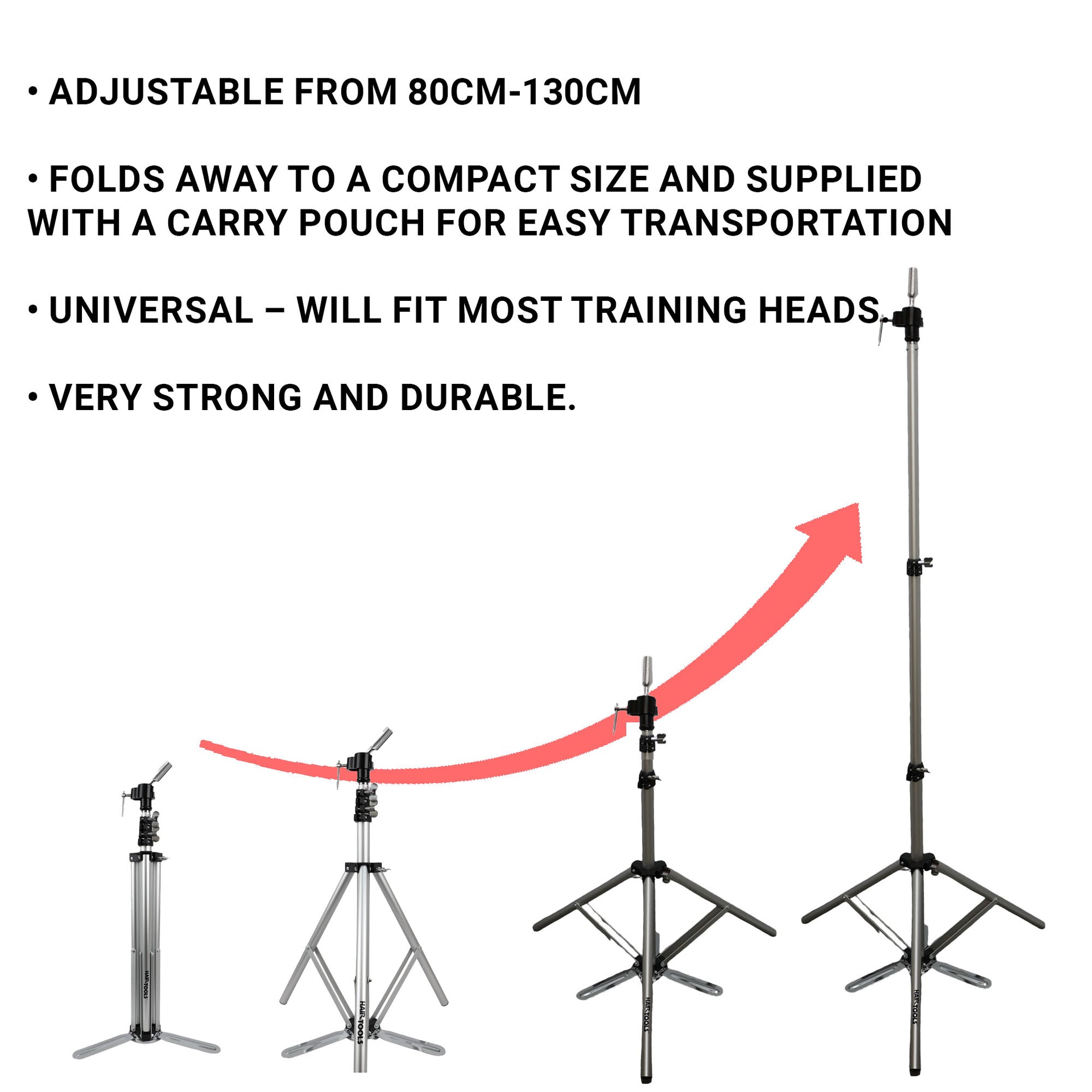 Ideal for hairdressing students, educators, and professionals seeking a reliable and portable stand for training heads.