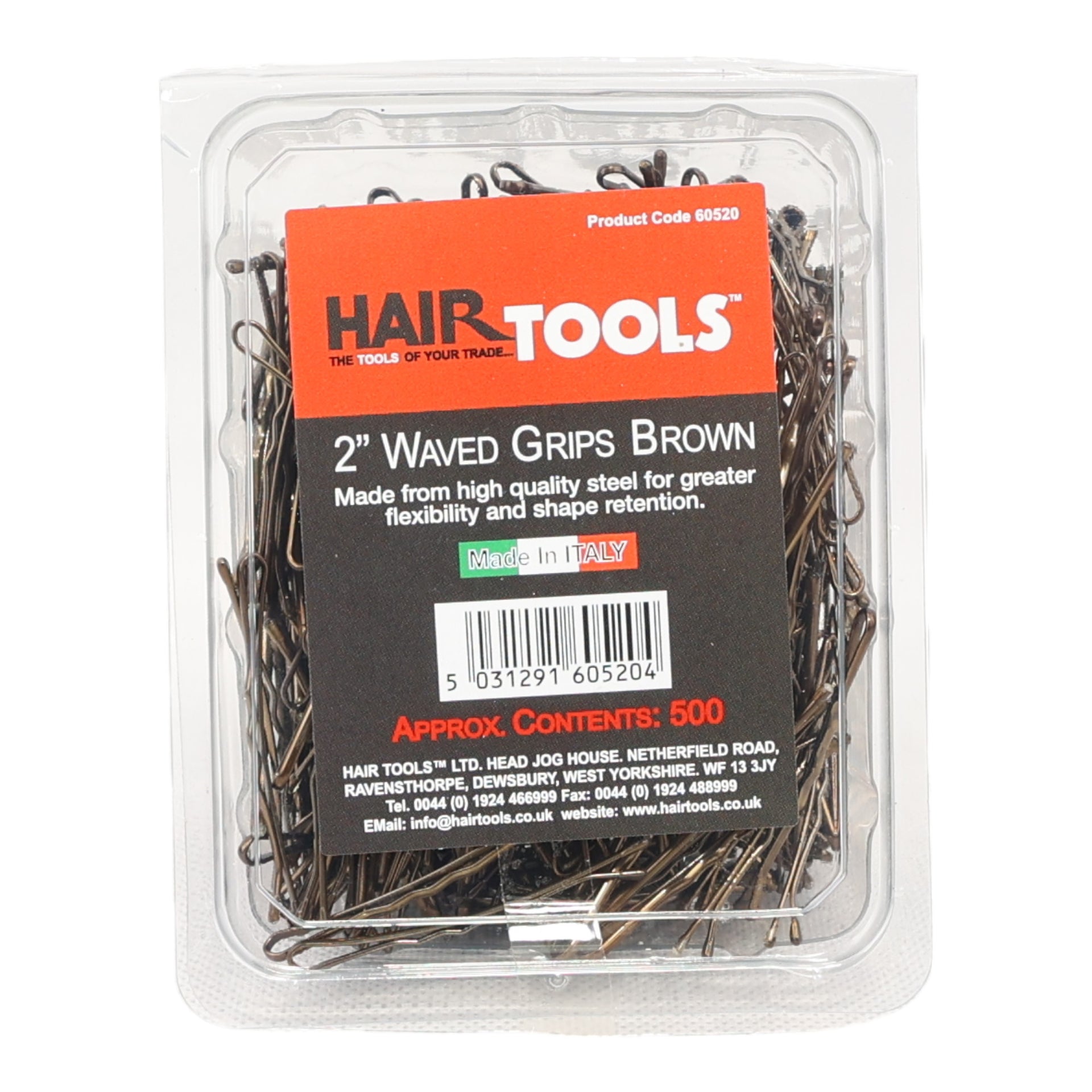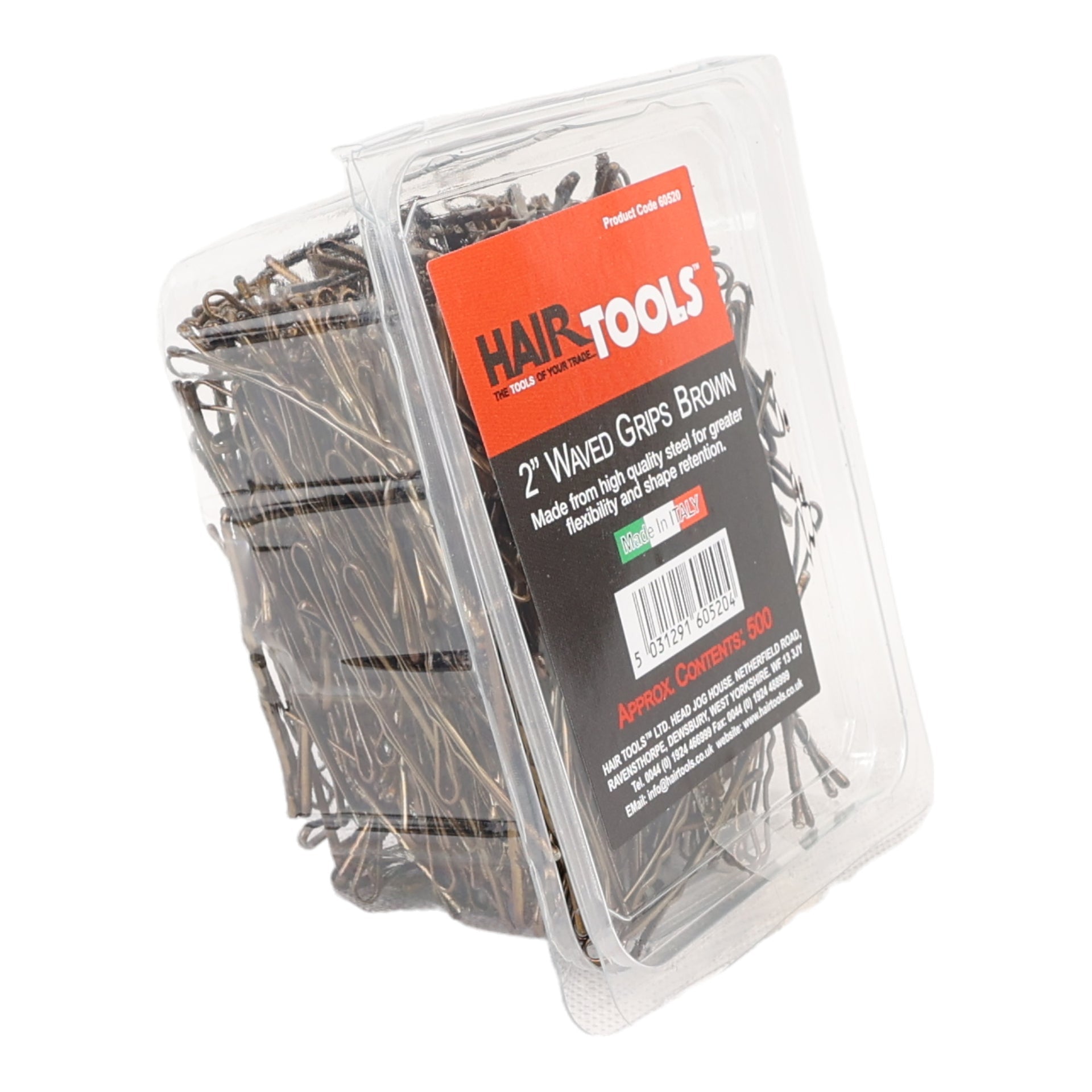 The Hair Tools Waved Grips 2” are the epitome of professional-grade hair accessories, expertly crafted in Italy to meet the exacting standards of stylists and discerning users. These 2-inch waved grips, available in a generous box of 500, ensure you always have an ample supply for busy salon environments or frequent use at home. The grips come in a versatile range of colours, including Brown, Blonde, Black, White, and Grey, designed to blend seamlessly with various hair tones, providing a discreet yet secure hold. Their unique corrugated design offers superior grip and non-slip performance, making them ideal for creating and maintaining a wide range of hairstyles, from simple updos to intricate bridal arrangements. Made from durable metal, these grips retain their shape after multiple uses, ensuring long-lasting performance.