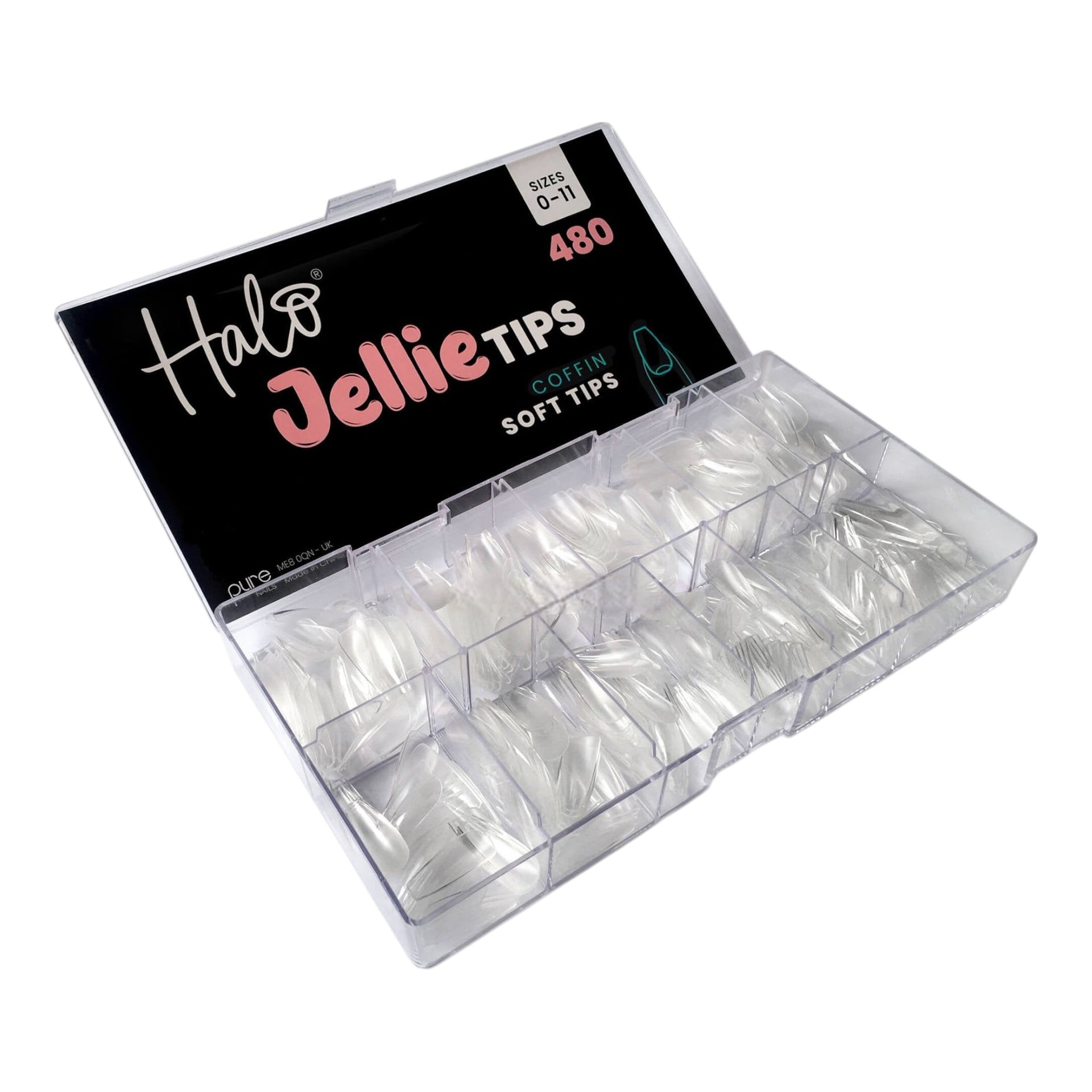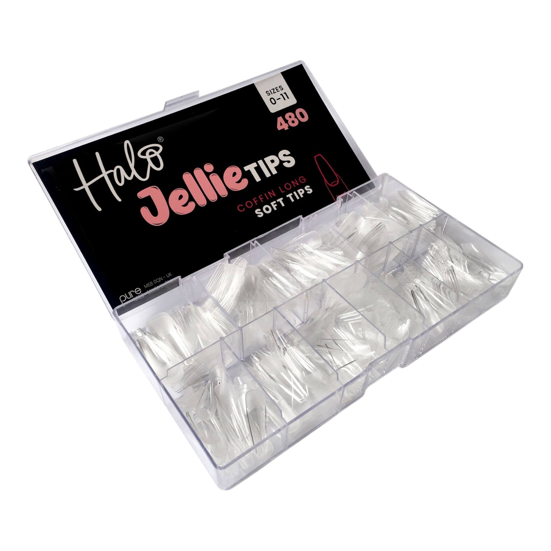 Step into the future of nail artistry with Halo Jellie Tips, featuring groundbreaking soakable soft gel technology in the coveted coffin shape. These innovative tips deliver the perfect balance of flexibility and durability, with each tip engineered to provide optimal coverage and a flawless finish. The Coffin Collection offers both standard and extended lengths, ensuring versatility for every client's desired look.