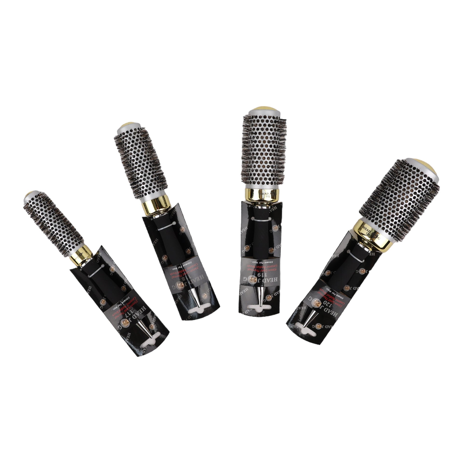 In addition to its outstanding performance, the Head Jog Gold Thermal Ceramic Radial Round Brush boasts a striking gold design, complemented by a silver ceramic sleeve, making it as visually appealing as it is effective. The vented barrel design enhances airflow, speeding up the blow-drying process and increasing styling efficiency. Available in four different sizes, this brush caters to various hair lengths and styles, providing you with the versatility needed to create a range of looks with ease. Whether you’re aiming to add volume, create curls, or smooth out your locks, this brush is engineered to meet all your styling needs. Elevate your hair care routine with the Head Jog Gold Thermal Ceramic Radial Round Brush, where luxury meets functionality.
