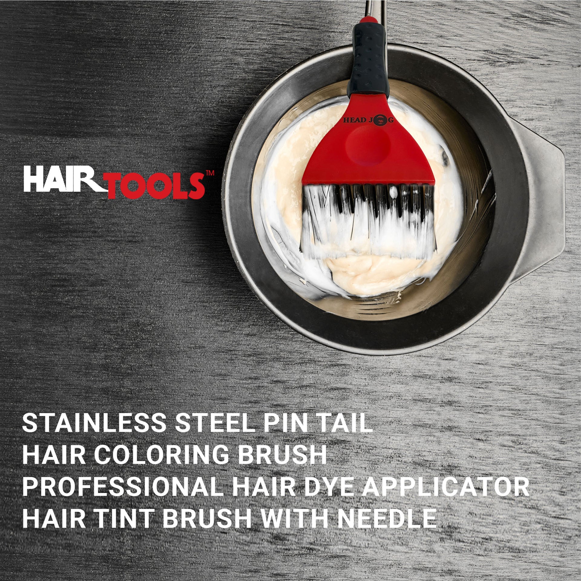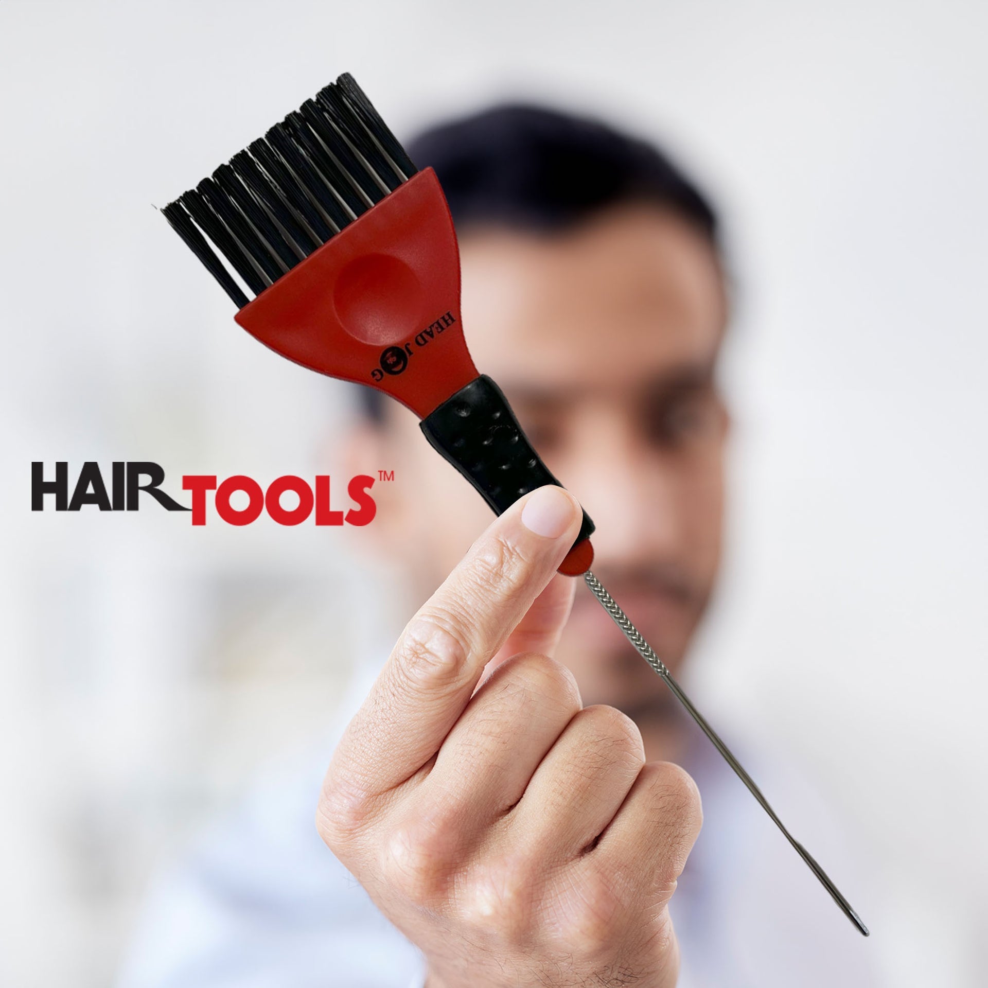 The Head Jog Metal Pin Tint Brush is an innovative hair colouring tool expertly crafted to meet the rigorous demands of professional stylists and colourists. It combines the precision of a premium tint applicator with the convenience of an integrated metal pin for sectioning, making it an essential tool for any salon. The brush features advanced AccuSoft bristles, specifically designed to deliver exceptional accuracy in colour application, ensuring consistent, professional results every time. Its robust, chemical-resistant construction guarantees long-lasting durability, even when exposed to the harsh chemicals used in professional hair dyes and bleaches, making it a reliable choice for daily use.