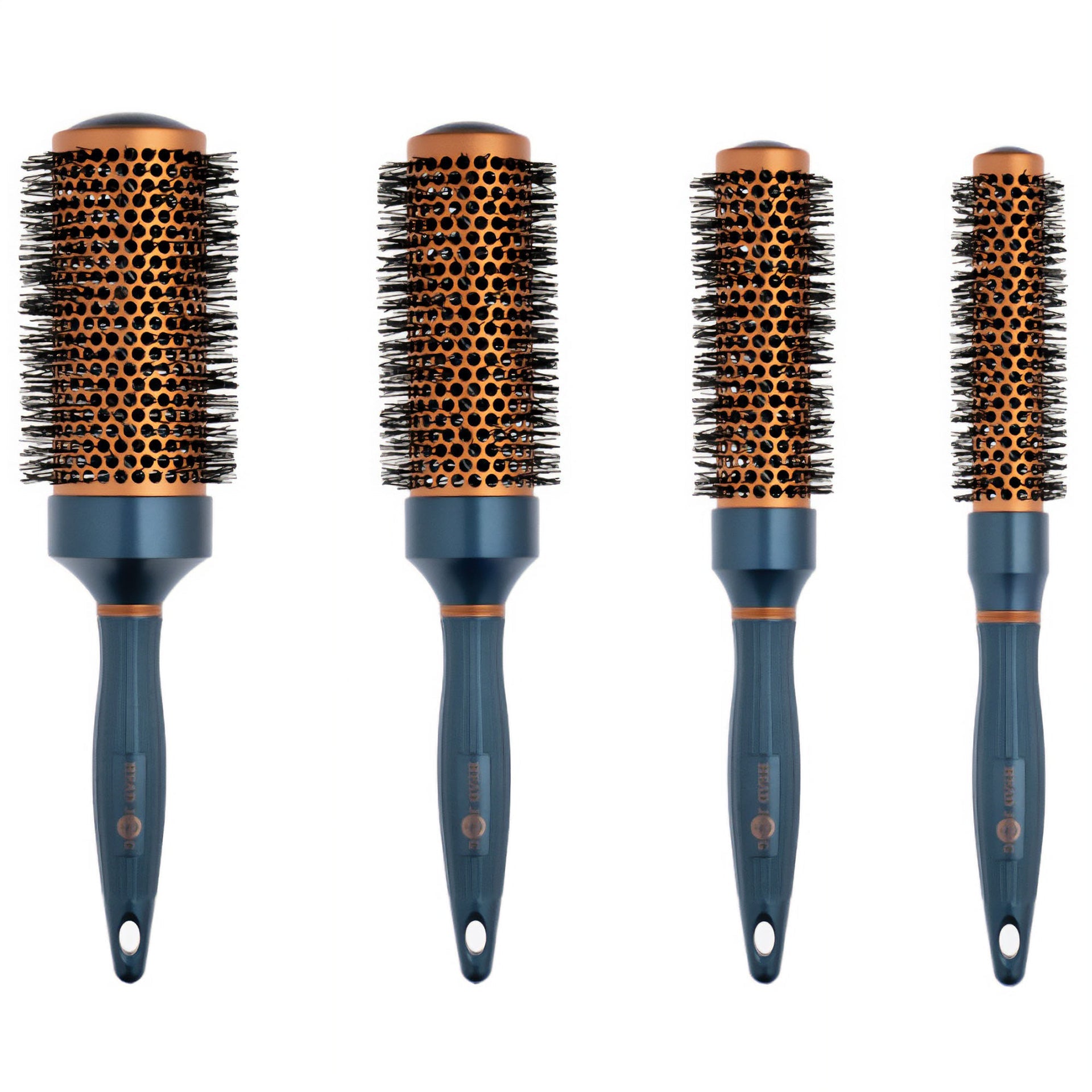 Engineered for professional performance, these brushes incorporate high heat-resistant bristles with a unique crimped design, offering enhanced grip while gliding effortlessly through the hair without snagging. Strategically placed vent holes within the barrel allow optimal airflow directly to the roots, further accelerating the drying and styling process. Available in various sizes including 25mm, 33mm, 43mm, and 53mm, each brush features an ergonomically designed handle ensuring maximum comfort, grip, and control during use. Elevate your styling results with these durable, high-performance radial brushes.