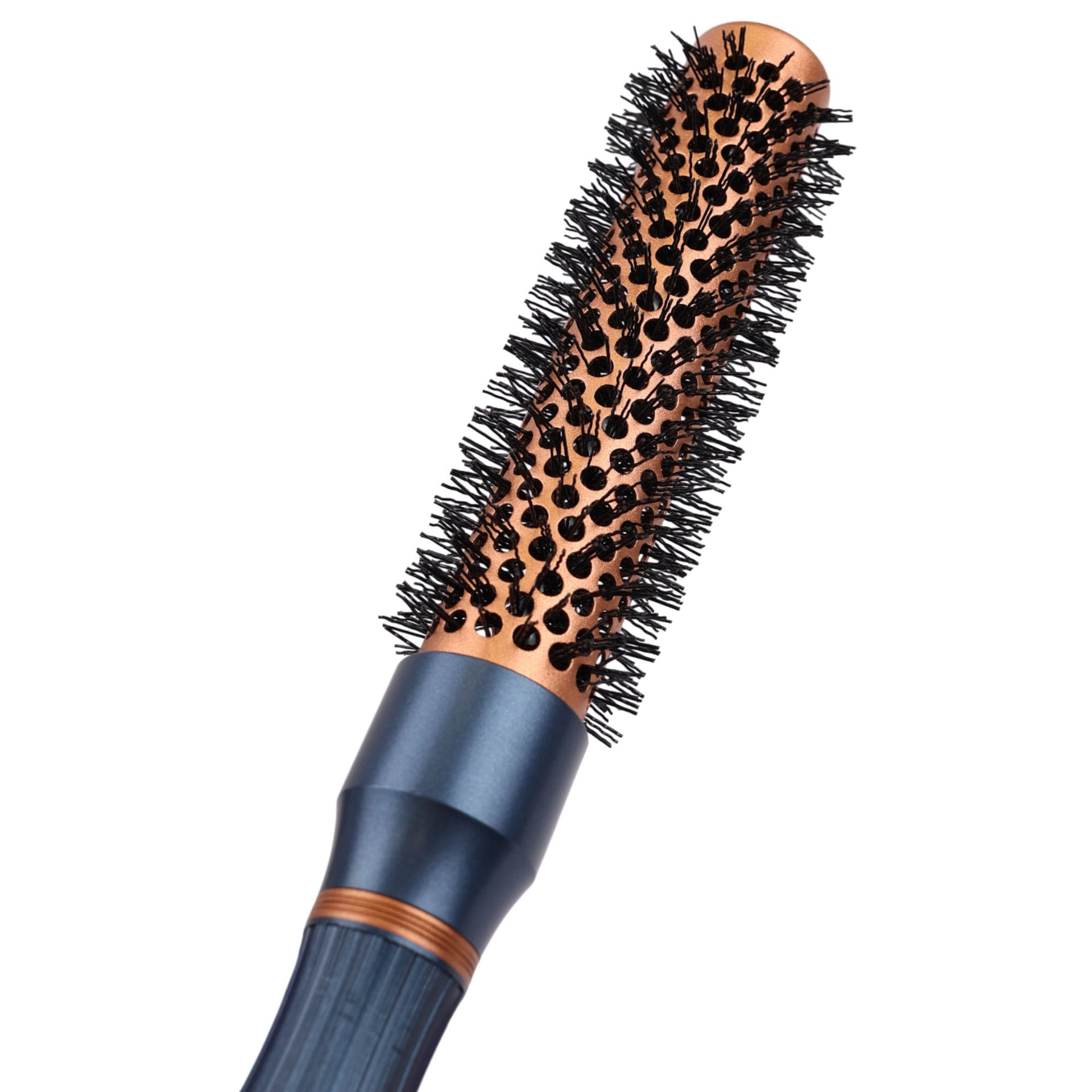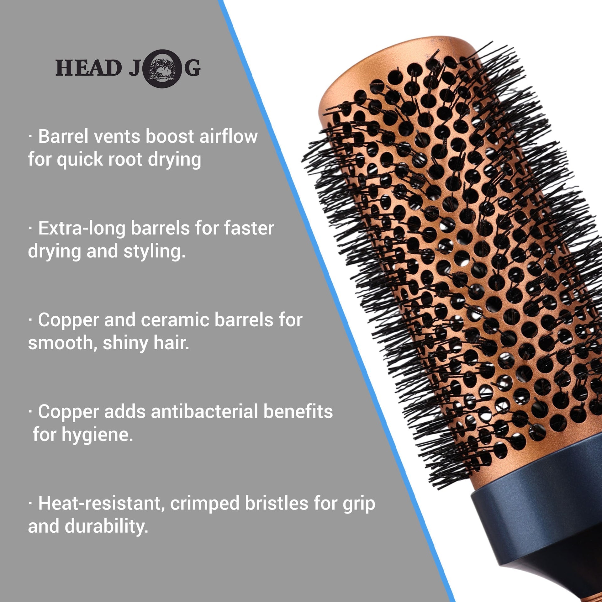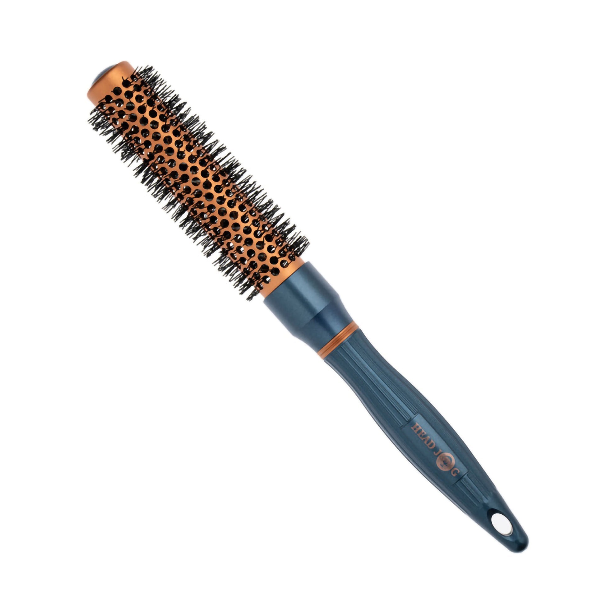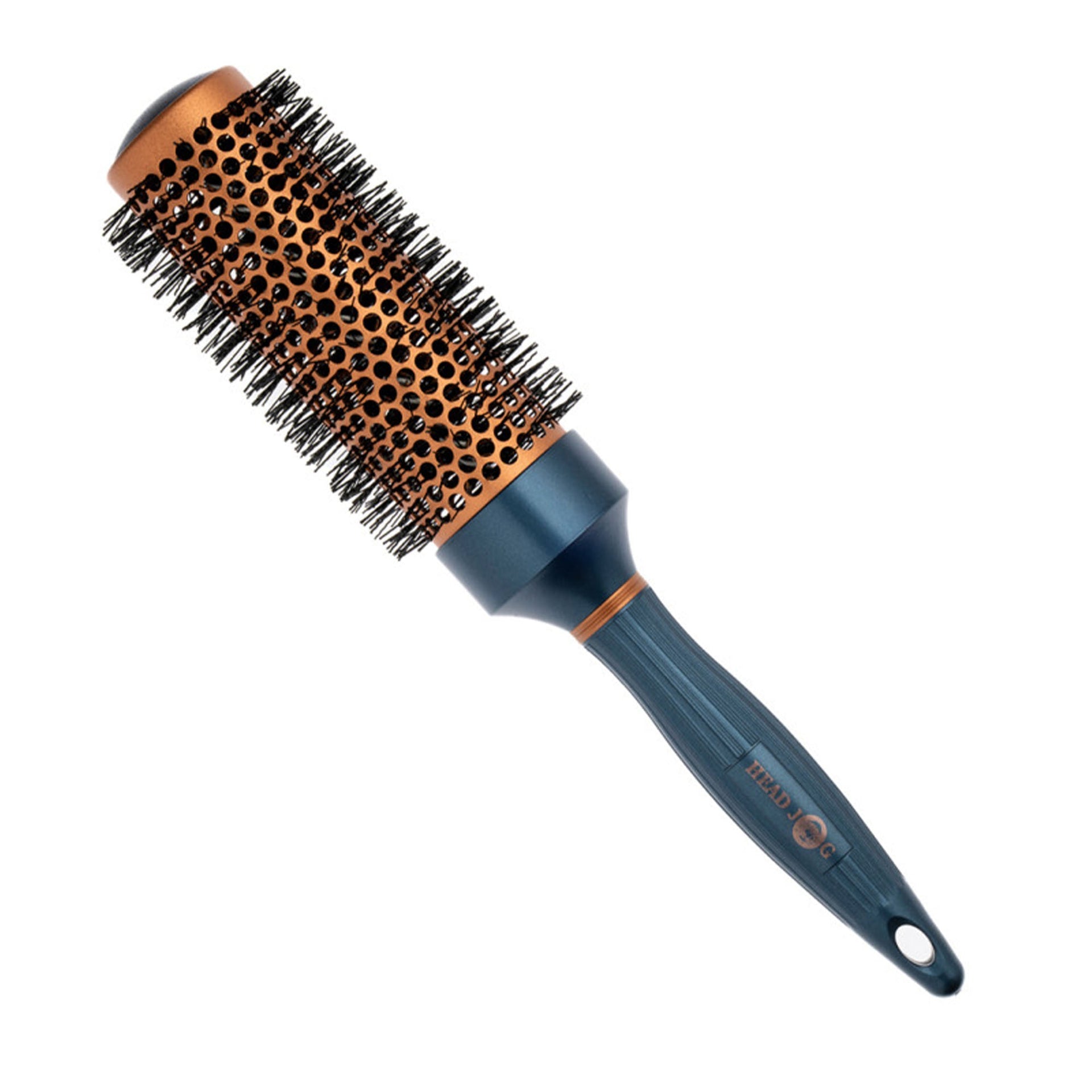 Experience quicker, more efficient blow-drying and styling with the sophisticated Head Jog Twilight XL Radial Round Brush collection. These striking twilight blue brushes feature extra-long barrels, specifically designed to handle larger sections of hair, significantly reducing drying time. The barrels boast an advanced copper and ceramic coating, ensuring heat is distributed evenly for smoother, healthier-looking hair imbued with radiant shine. This innovative coating also provides natural anti-bacterial properties, promoting better hygiene for your styling tools.