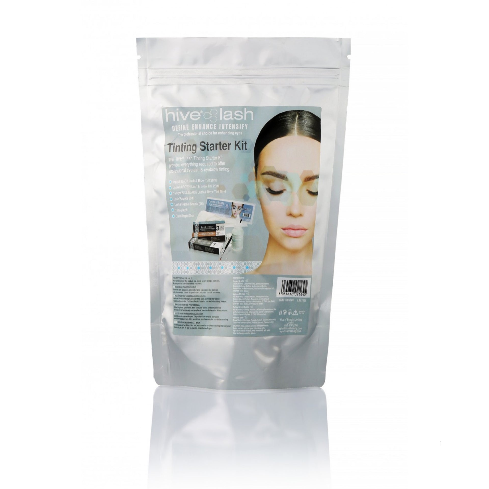 - Kit Contents: 3 x 20ml tint tubes (Impact Black, Uptown Brown, Twilight Blue/Black), 50ml peroxide developer, 96 protective eye sheets, eyelash tinting brush, glass dappen dish