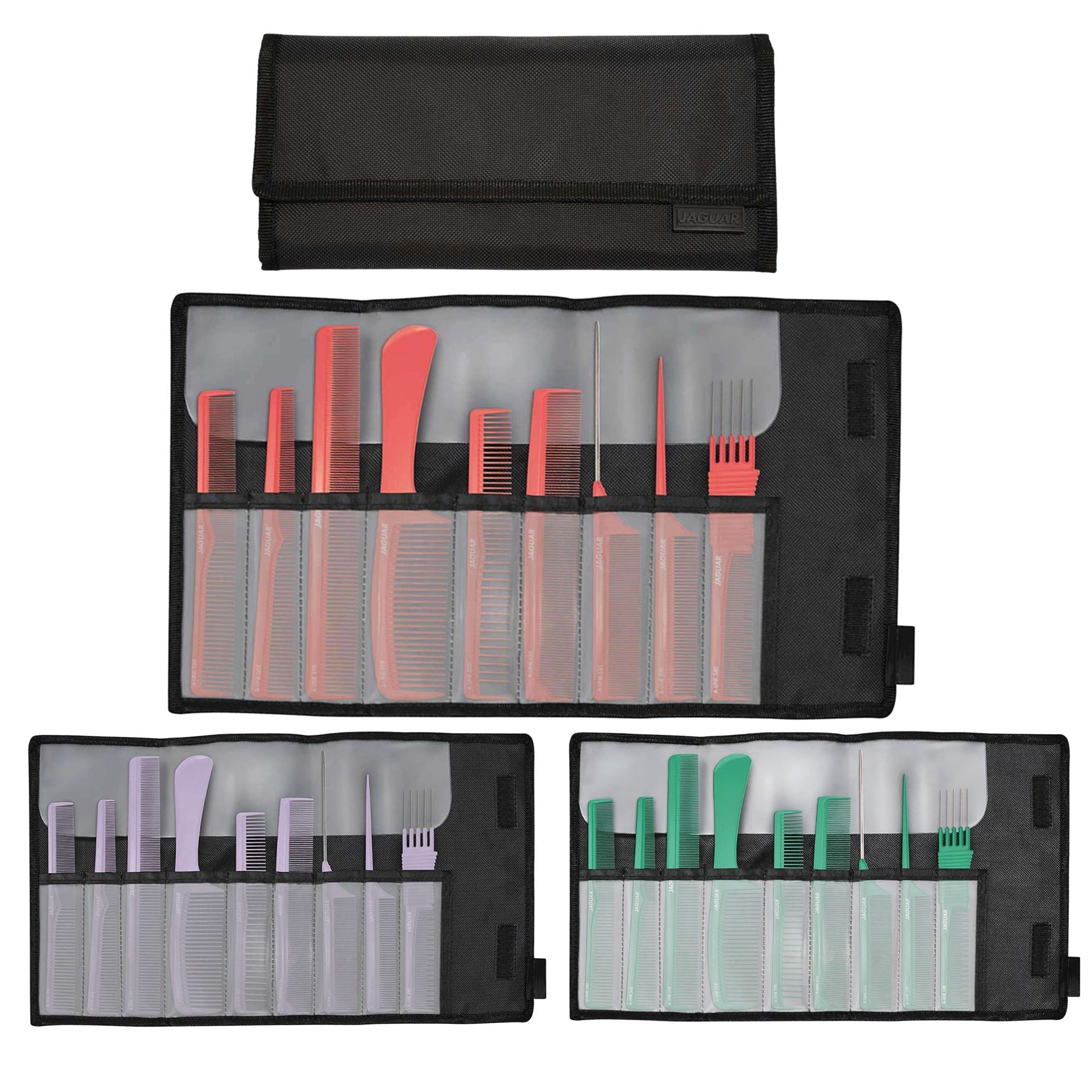 Each colour variant in the Jaguar Comb Set offers identical performance characteristics whilst allowing for personal expression, colour coding by stylist in shared workspaces, or integration with salon décor themes. The vibrant Coral set brings a warm, energetic pop of colour to your styling station, while the fresh Green option offers a cool, contemporary aesthetic, and the sophisticated Lavender provides an elegant, soothing visual presence. Beyond their practical benefits, these professional-grade combs enhance the overall styling experience for both stylist and client, with the smooth glide and balanced weight contributing to more precise cutting, more comfortable sectioning, and more controlled styling results. Whether you're performing precision cutting, creating intricate updos, managing curly textures, or styling men's hair, this comprehensive set ensures you'll always have exactly the right tool at hand for flawless execution of any technique. From the thoughtful inclusion of specialised combs for every styling scenario to the durable construction that withstands years of professional use, every aspect of this collection reflects Jaguar's commitment to creating tools that combine ergonomic comfort, technical precision, and everyday practicality—delivering a complete solution that elevates both the styling process and the final results.