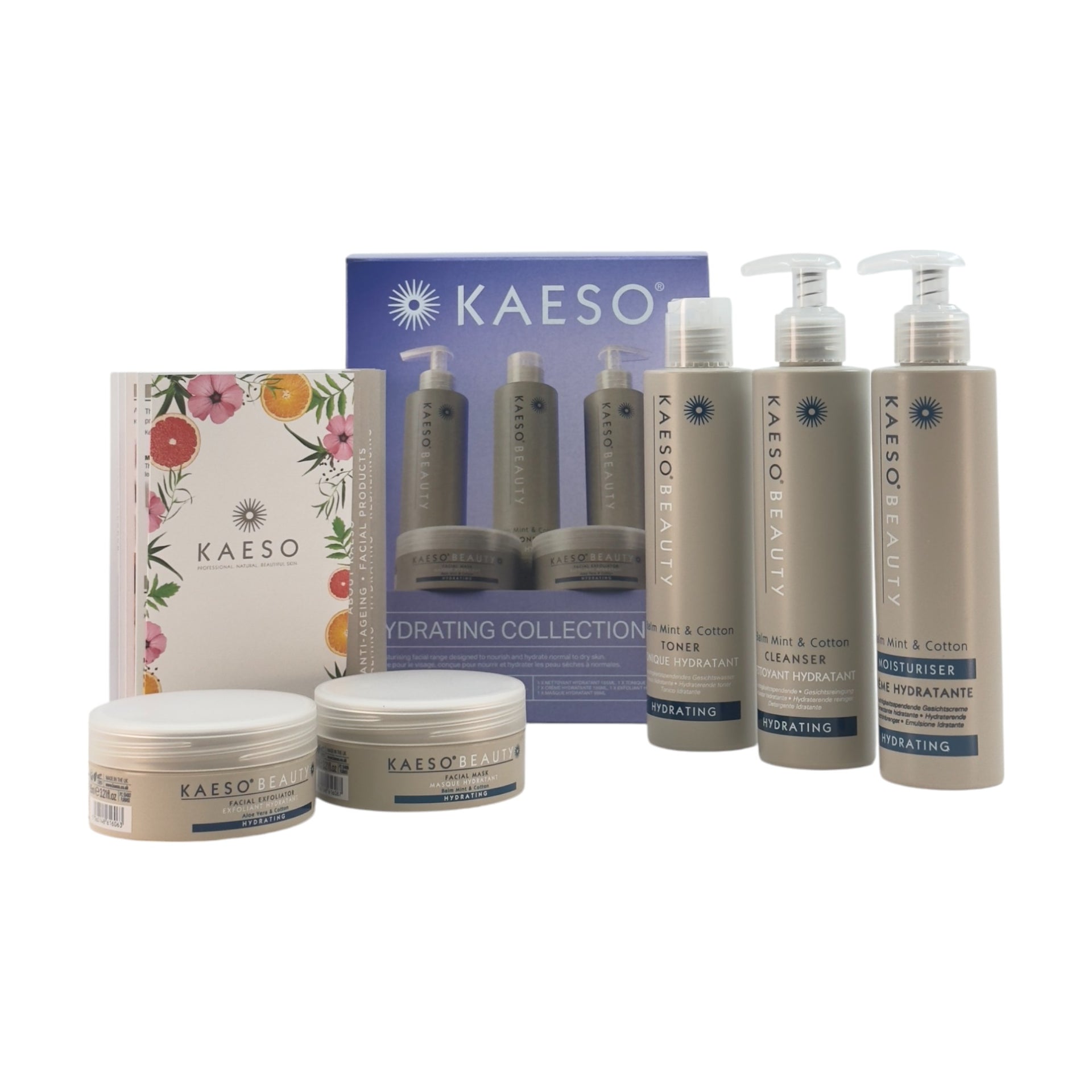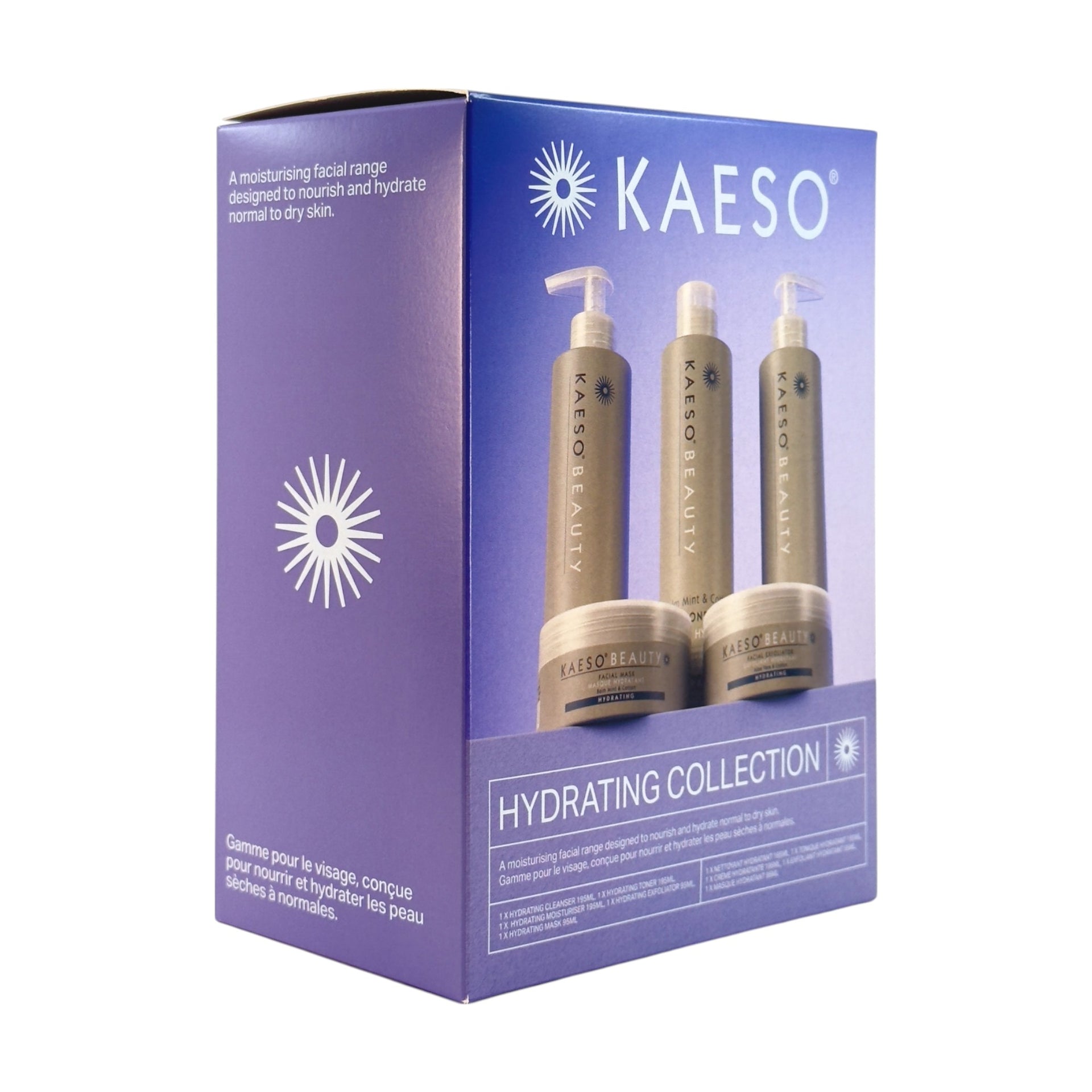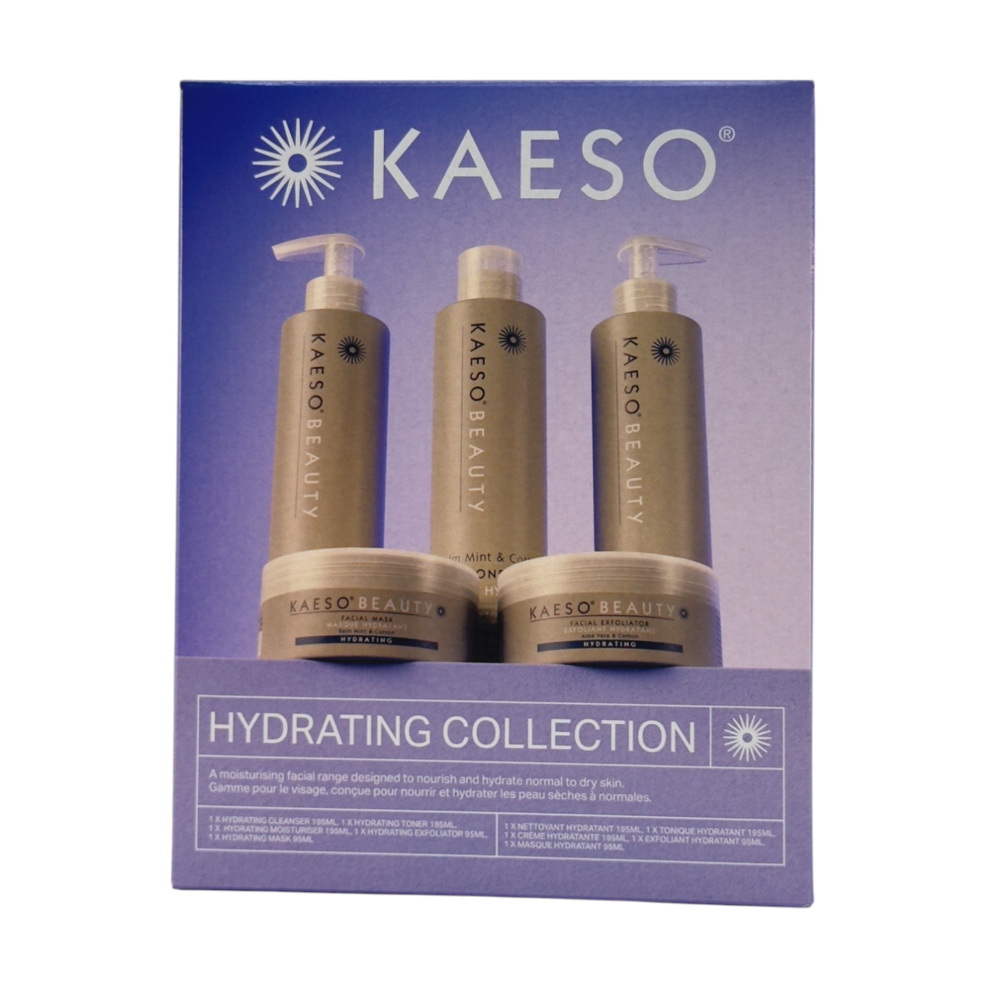The Kaeso - Hydrating Collection comprises a full regimen of five expertly formulated products to provide a complete hydrating experience. You'll find a generous 195ml Hydrating Cleanser and Hydrating Toner to purify and prepare your skin, followed by a revitalising 95ml Hydrating Exfoliator to gently refine texture. For intense nourishment, a 95ml Hydrating Mask delivers a deep surge of moisture, culminating with the essential 195ml Hydrating Moisturiser to seal in the goodness. This complete set offers everything you need to transform dehydrated skin into a beautifully soft and dewy canvas, ensuring a truly indulgent and effective skincare journey.