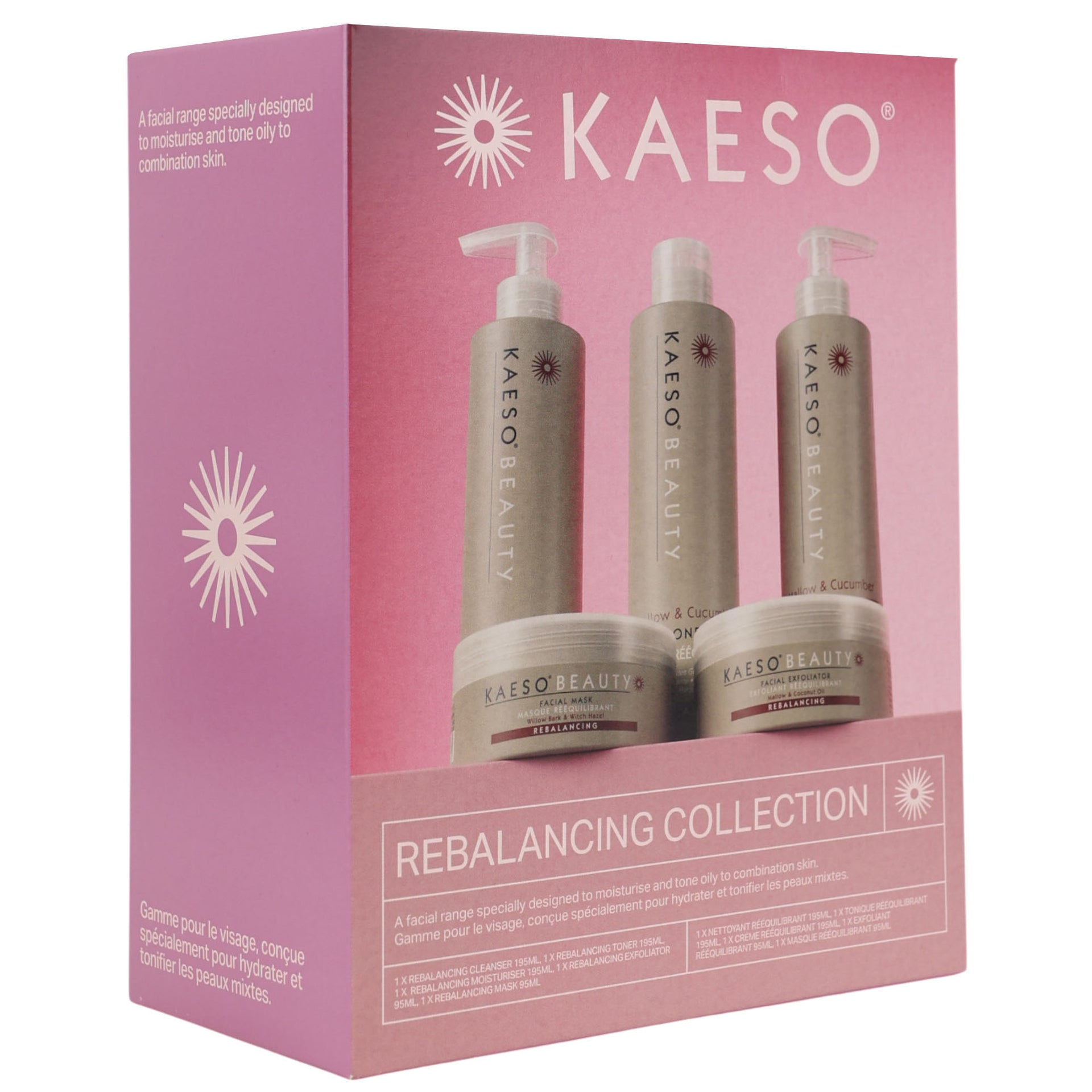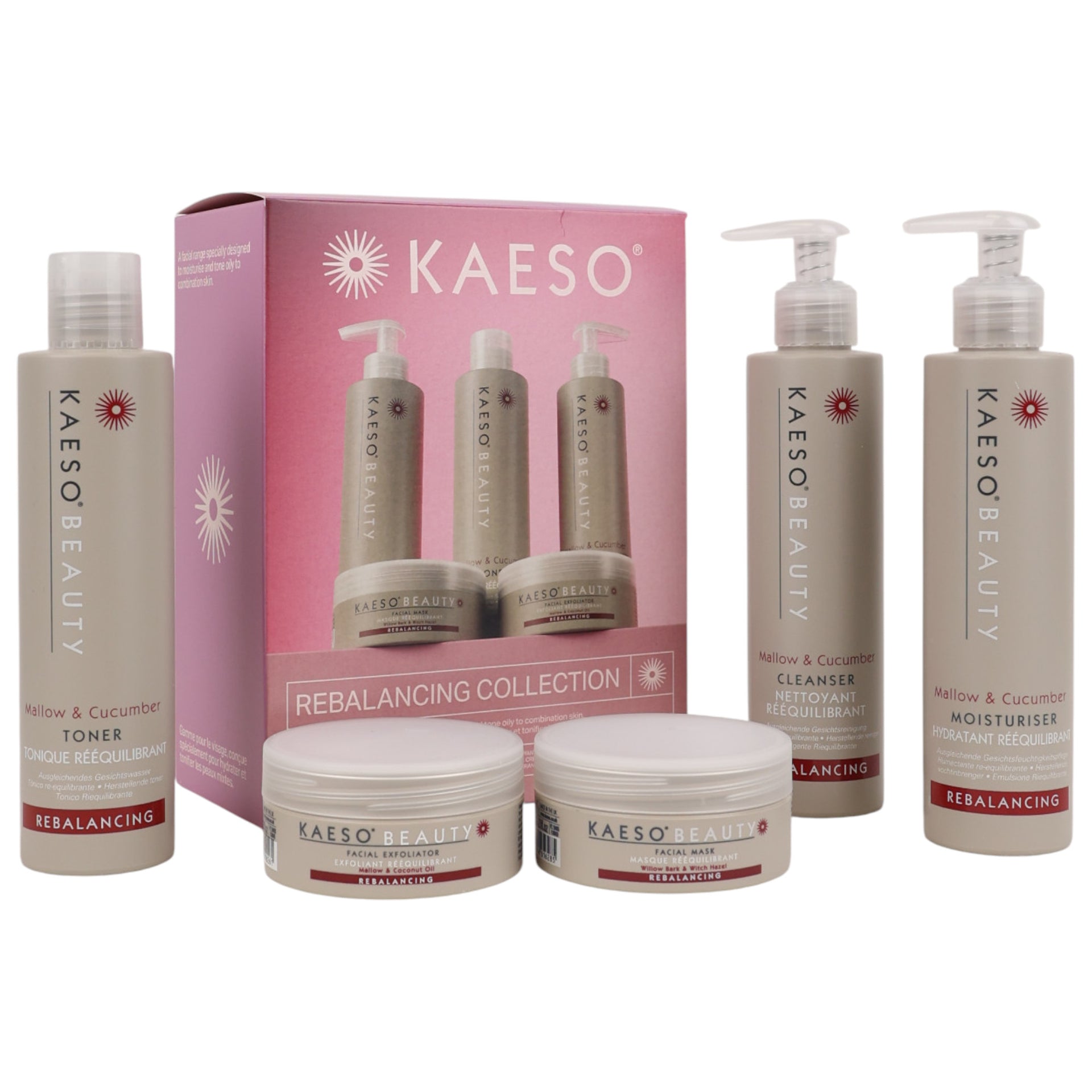 Kaeso Rebalancing Collection includes Rebalancing Cleanser (195ml) that thoroughly removes impurities and excess oil without stripping, Rebalancing Toner (195ml) that tightens pores and removes residual oil with witch hazel and cucumber, Rebalancing Exfoliator (95ml) that refines texture and clears congestion with walnut shell powder, Rebalancing Mask (95ml) that delivers intensive treatment with zinc oxide and pomegranate extract, and Rebalancing Moisturiser (195ml) that provides essential hydration without adding shine. The collection represents exceptional value compared to purchasing products individually, allowing you to maintain a consistent skincare protocol that addresses all aspects of oily skin concerns. The precisely balanced formulations ensure skin remains comfortable and healthy while effectively controlling shine, preventing the rebound oil production that often occurs with overly harsh oil-control products. With its perfect balance of effective oil control and essential skin nourishment, this rebalancing collection not only effectively mattifies and clarifies oily complexions but also transforms your daily skincare routine into a targeted treatment system that progressively normalises sebum production for a naturally balanced, shine-free complexion that no longer requires constant blotting or powder touch-ups.