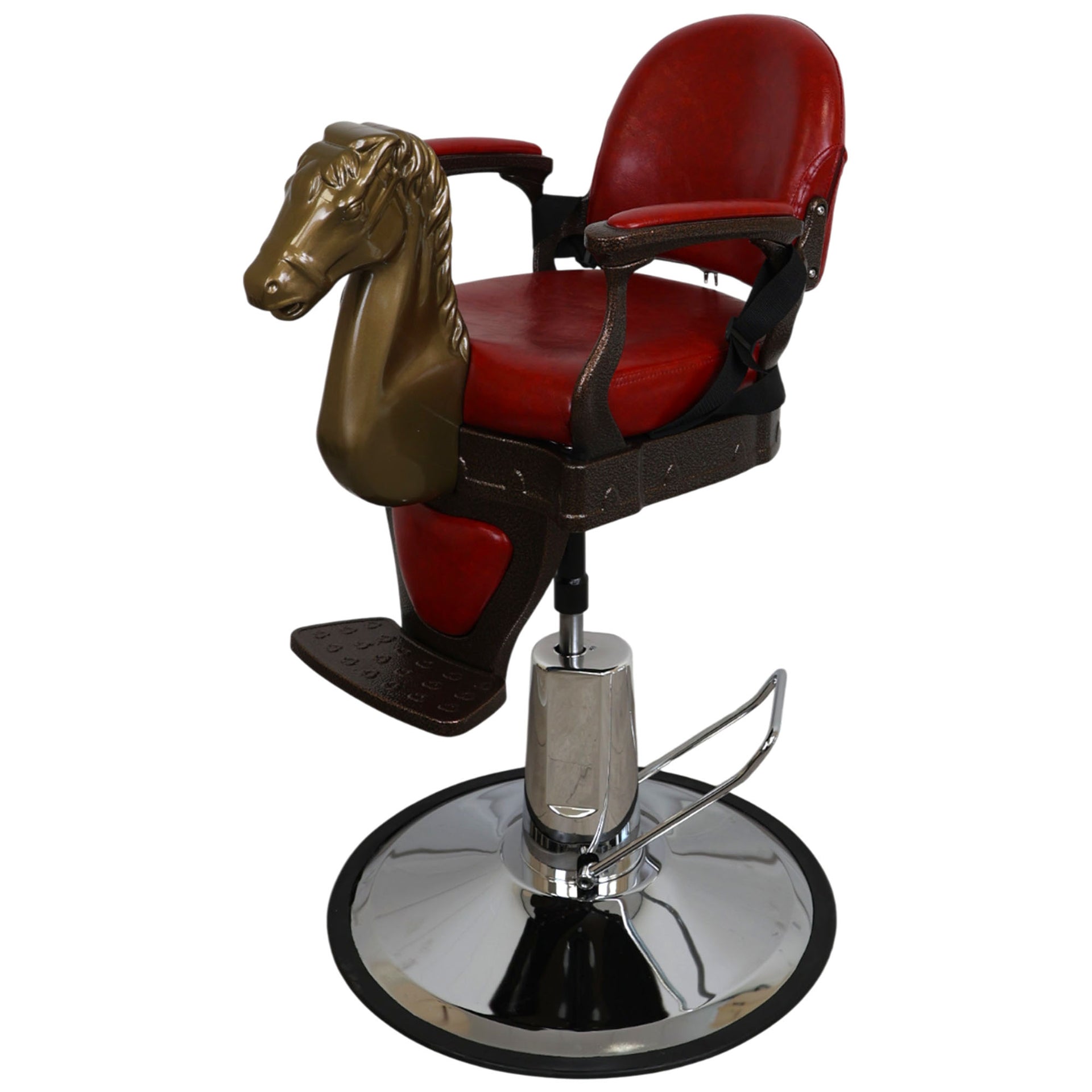 The Kids Barber Chairs - Hydraulic Cartoon Horse Burgundy transforms the often-dreaded kids' haircut experience into a delightful adventure that young clients will eagerly anticipate. This premium styling chair features an exquisite vintage-inspired design with a beautifully crafted decorative horse head mounted on luxurious rose gold metalwork, complemented by sumptuous burgundy upholstery with elegant white contrast stitching and decorative studs. The thoughtfully engineered chair combines captivating aesthetics with professional functionality, featuring a comfortable contoured seat with safety-focused ergonomics for kids aged 3-8 years. The robust heavy-duty construction ensures stability and durability even in busy salon environments with multiple daily appointments. Unlike standard salon chairs that can intimidate young clients, this whimsical equestrian design creates a familiar and reassuring experience that effectively calms kids during styling sessions, resulting in significantly more cooperative clients and noticeably smoother appointments for both stylists and parents. The premium upholstery offers easy cleaning between clients, maintaining the highest hygiene standards essential for kids' services.