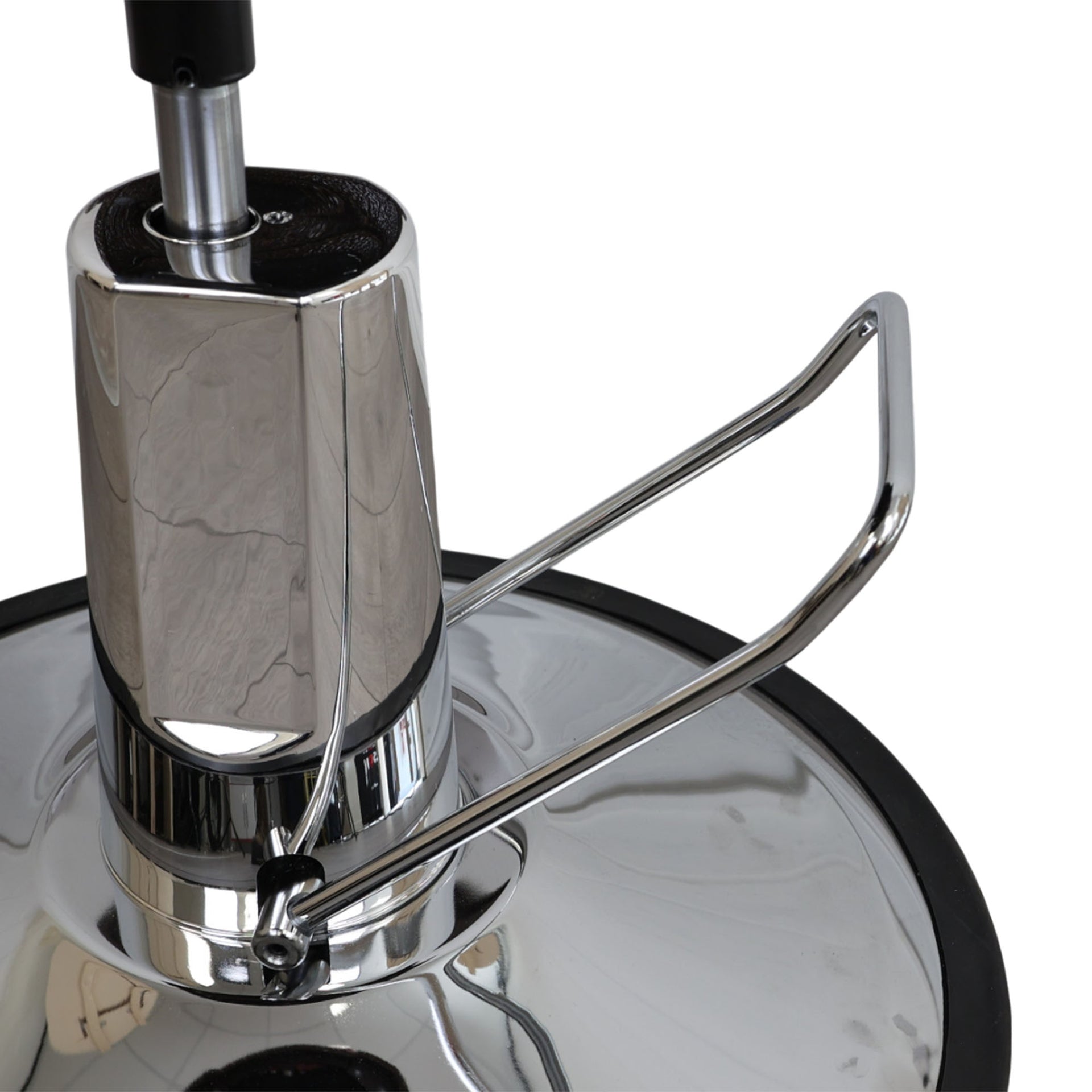 - Professional-grade hydraulic height adjustment system with chrome base for optimal styling positioning.