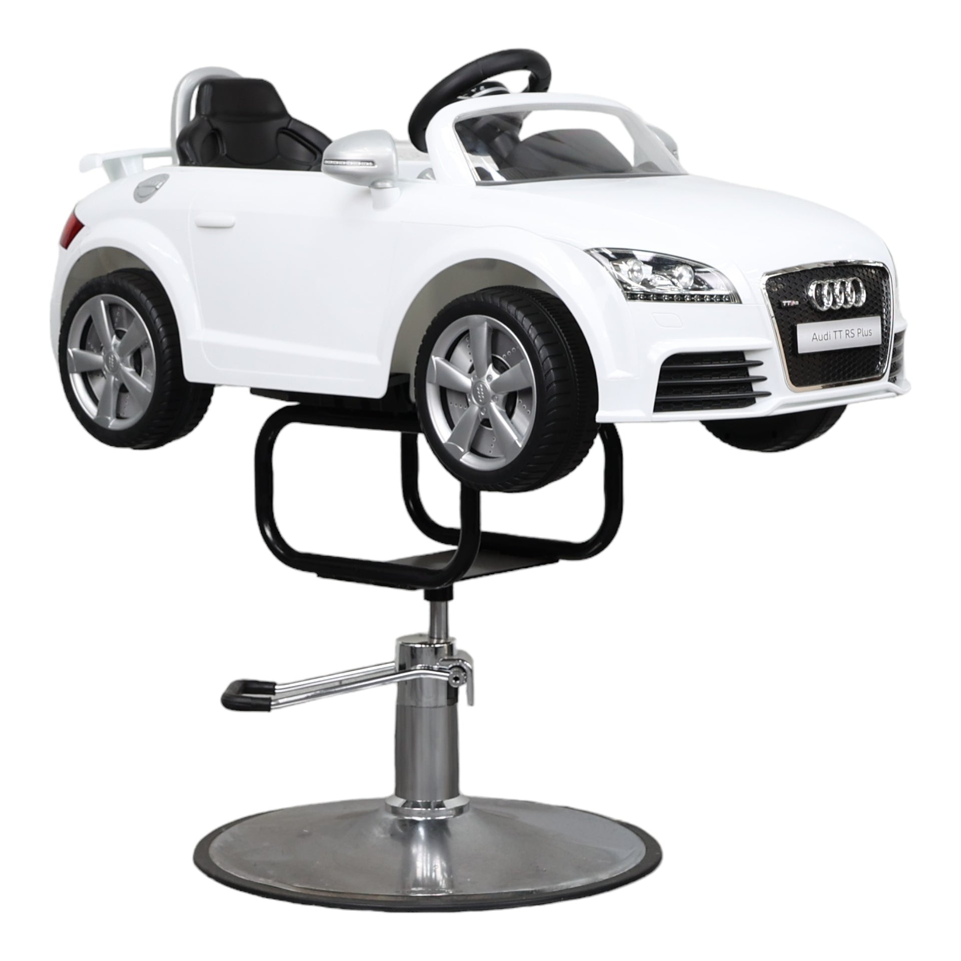 The Kids Barber Chairs - Premium Sports Roadster White revolutionises the kids' salon experience by transforming routine haircuts into thrilling adventures through its stunning sports car design. This premium styling chair features an authentic luxury roadster aesthetic with meticulous attention to detail, including realistic LED headlights, five-spoke alloy-style wheels, and sleek aerodynamic contours in a brilliant white finish that immediately captures kids' imagination. Thoughtfully designed for professional salon environments, this innovative chair combines playful aesthetics with practical functionality, featuring a comfortable seat with safety-focused ergonomics for kids aged 3-8 years. The robust construction supports a weight capacity of up to 30kg, ensuring durability even in busy salon environments with multiple daily appointments. Unlike standard salon chairs that can intimidate young clients, this roadster-inspired design creates an immersive experience that distracts kids during styling sessions, resulting in calmer, more cooperative clients and significantly smoother appointments for stylists and parents alike. The easy-clean upholstery allows for quick sanitation between clients, maintaining the highest hygiene standards essential for kids' services.