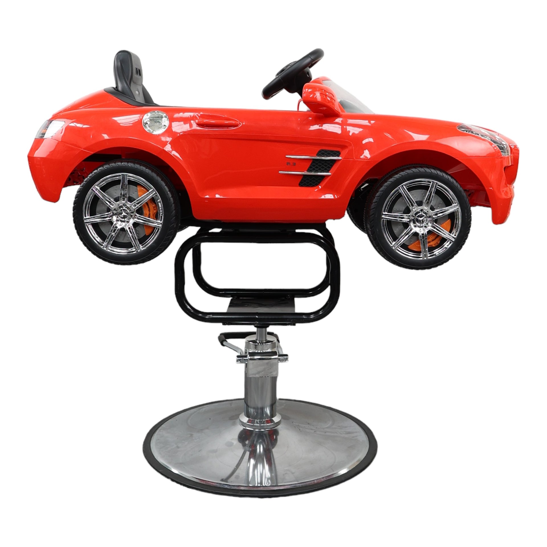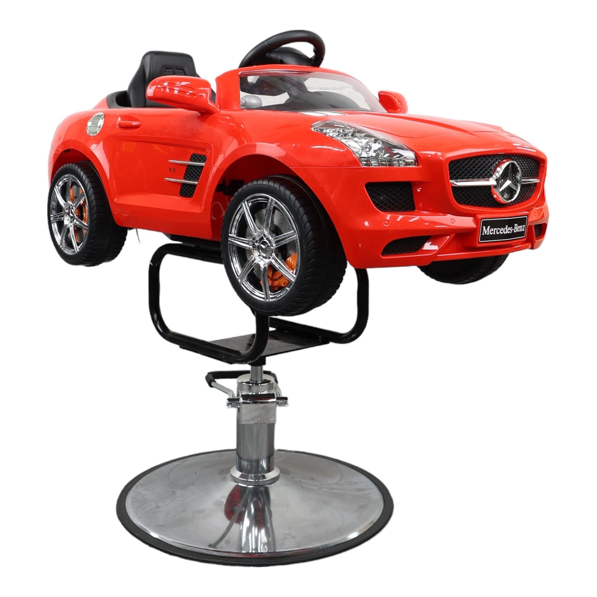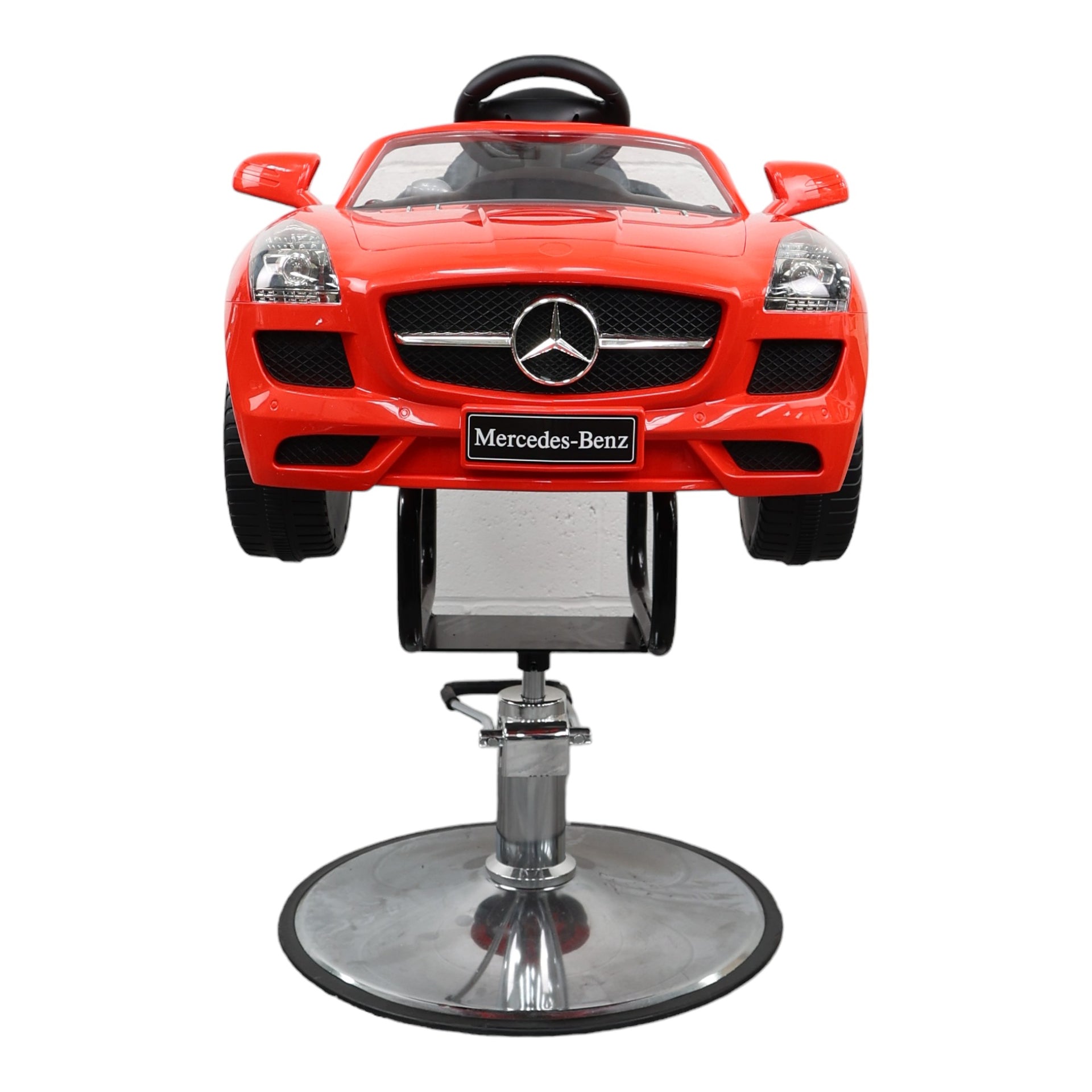 The Child Barber Chairs - Mercedes Sport Car Red brings a blend of style, safety, and entertainment to your salon, making haircuts an enjoyable experience for young