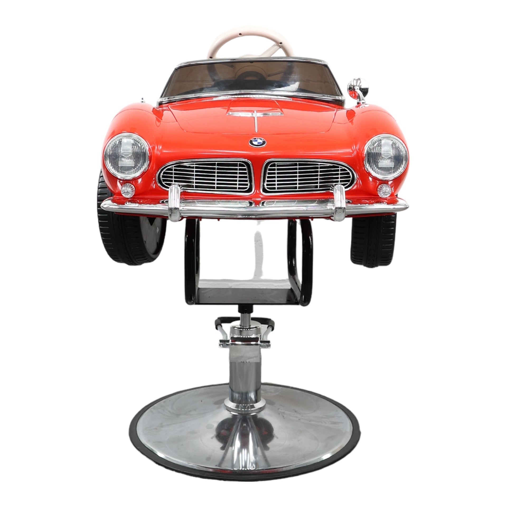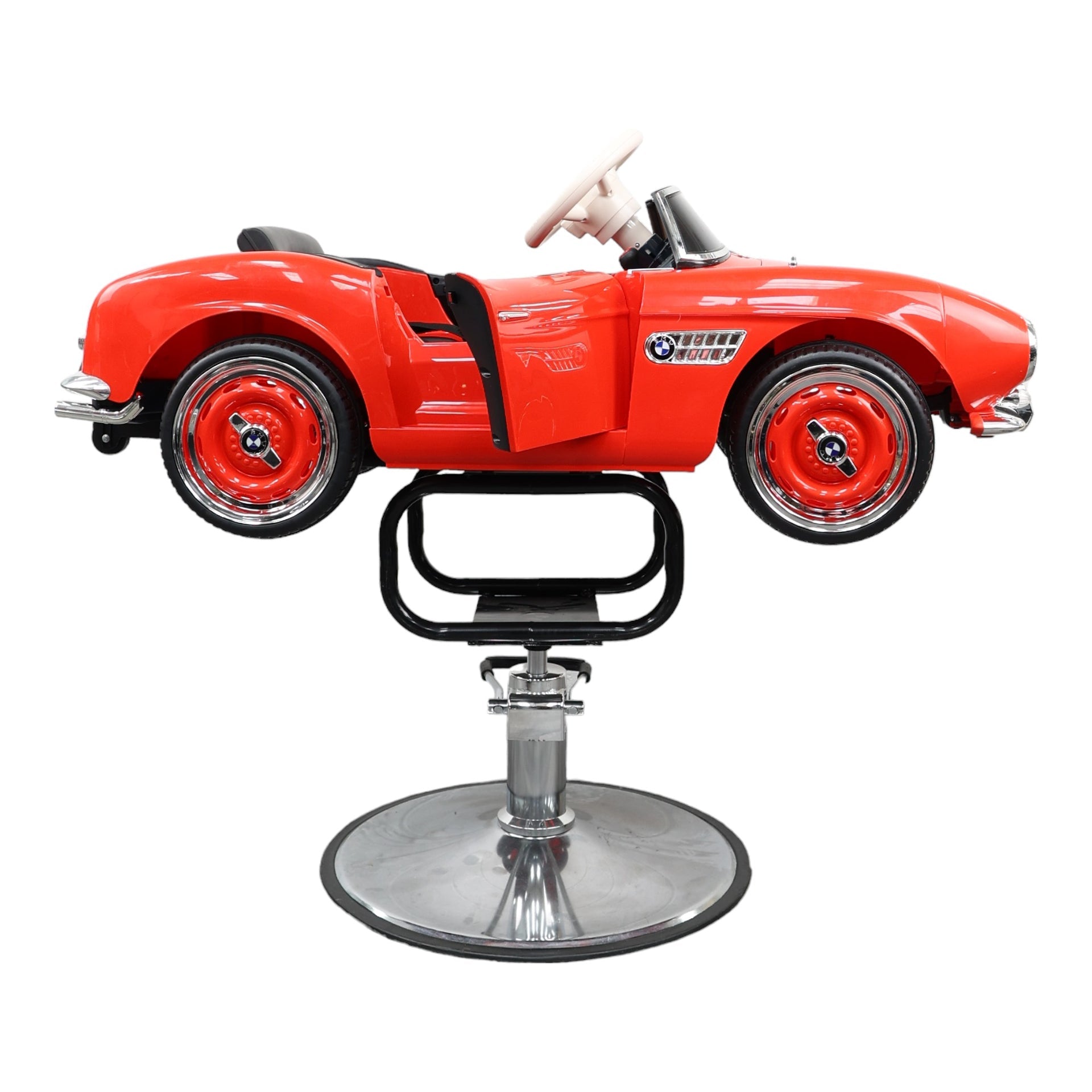 The Kids Barber Chairs - Vintage Touring Sport Red revolutionises the hairdressing experience for young clients by transforming routine haircuts into thrilling adventures behind the wheel of a classic touring sports car. This premium styling chair features an authentic vintage design with meticulous attention to detail, including gleaming chrome accents, distinctive front grille, crystal-clear headlights, multi-spoke alloy wheels, and a vibrant racing red finish that immediately captures kids' imagination and enthusiasm. Thoughtfully engineered for professional salon environments, this innovative chair combines nostalgic aesthetics with practical functionality, featuring a comfortable upholstered seat with safety-focused ergonomics for kids aged 3-8 years. The robust construction supports a weight capacity of up to 30kg, ensuring durability even in busy salon environments with multiple daily appointments. Unlike standard salon chairs that often intimidate young clients, this classic sports car design creates an immersive experience that effectively distracts kids during styling sessions, resulting in significantly calmer, more cooperative clients and noticeably smoother appointments for both stylists and parents. The easy-clean surfaces allow for quick sanitation between clients, maintaining the highest hygiene standards essential for kids' services.