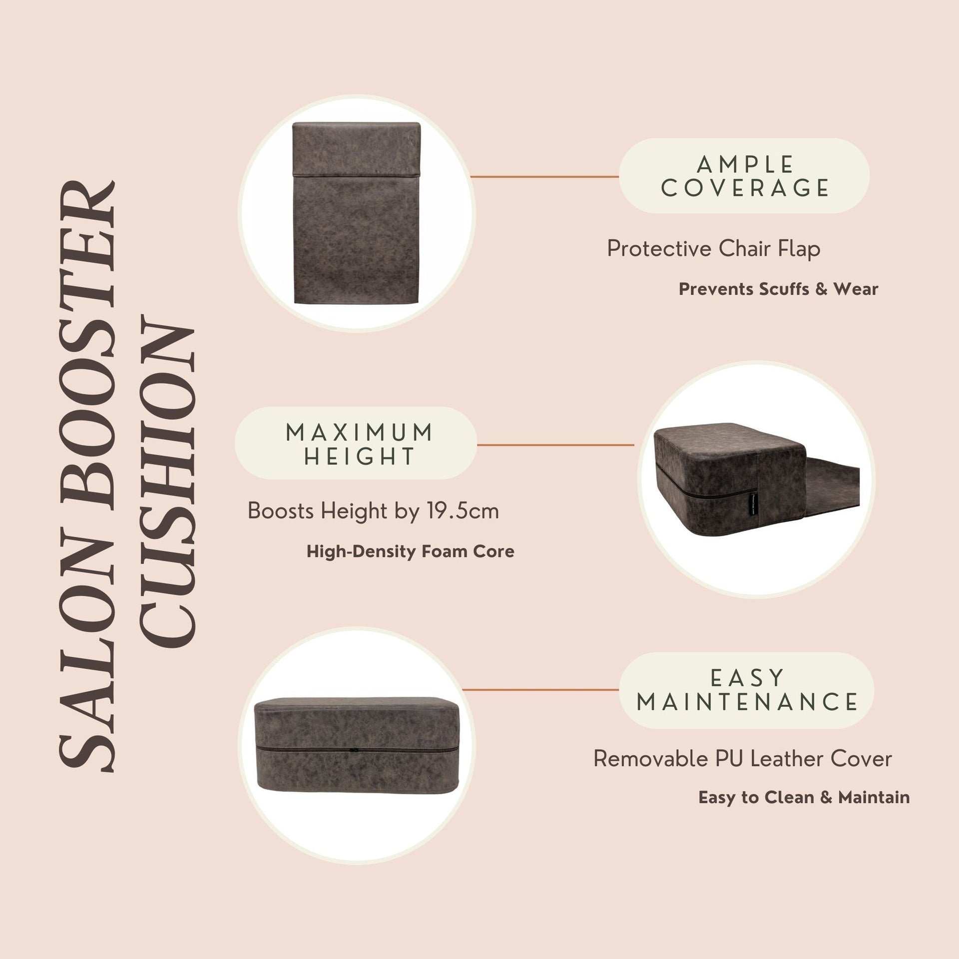 Ensure your youngest clients are comfortable and perfectly positioned with the Kids Booster Seats - Professional Salon & Barber Cushion in Brown. This essential salon accessory is designed to fit most standard styling and barber chairs, providing a generous height boost to make cutting children's hair easier and more precise. The cushion is filled with a thick, high-density sponge that offers superb comfort and support, while the durable PU leather cover provides a professional look. The rich brown finish adds a touch of warmth and classic style to any salon or barbershop decor.