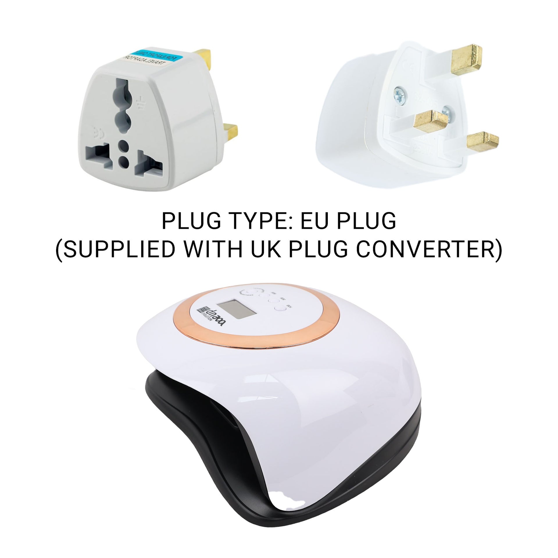- Plug Type: EU plug (supplied with UK plug converter)