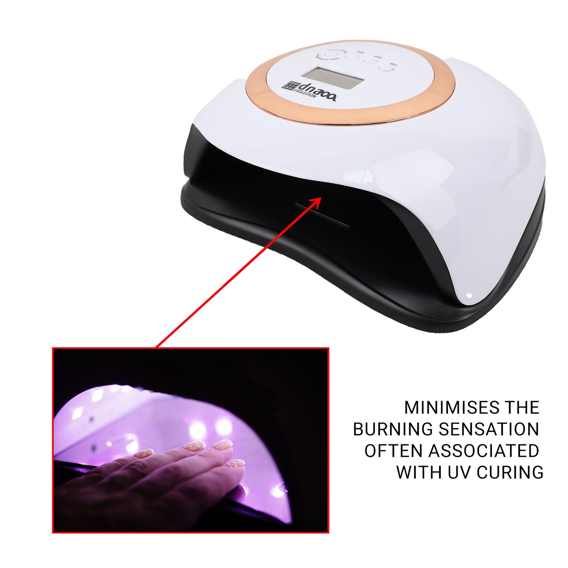 - Minimises the burning sensation often associated with UV curing.