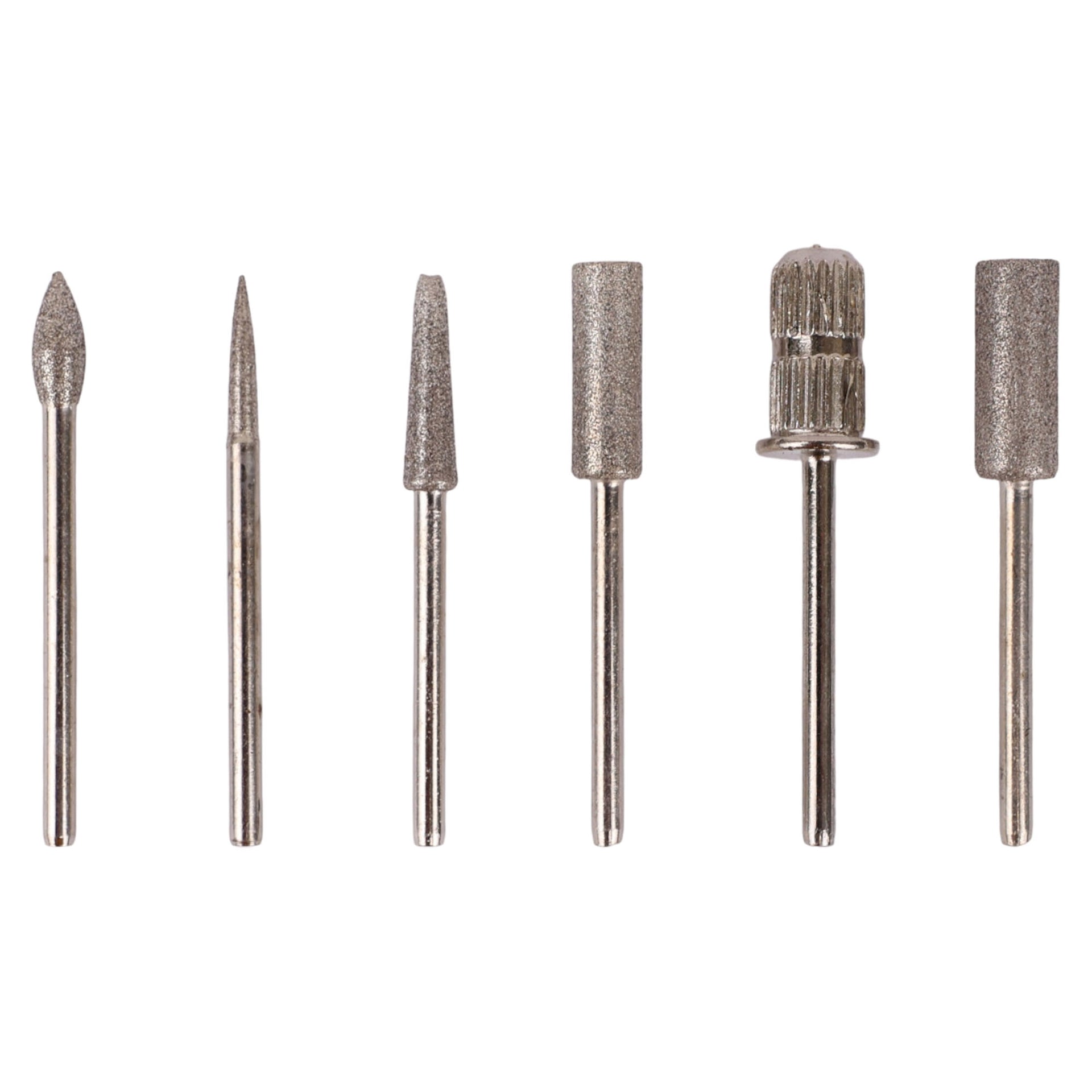 - Contains six drill bits: mandrel, large barrel, small barrel, needle head, safety bit, and cone.