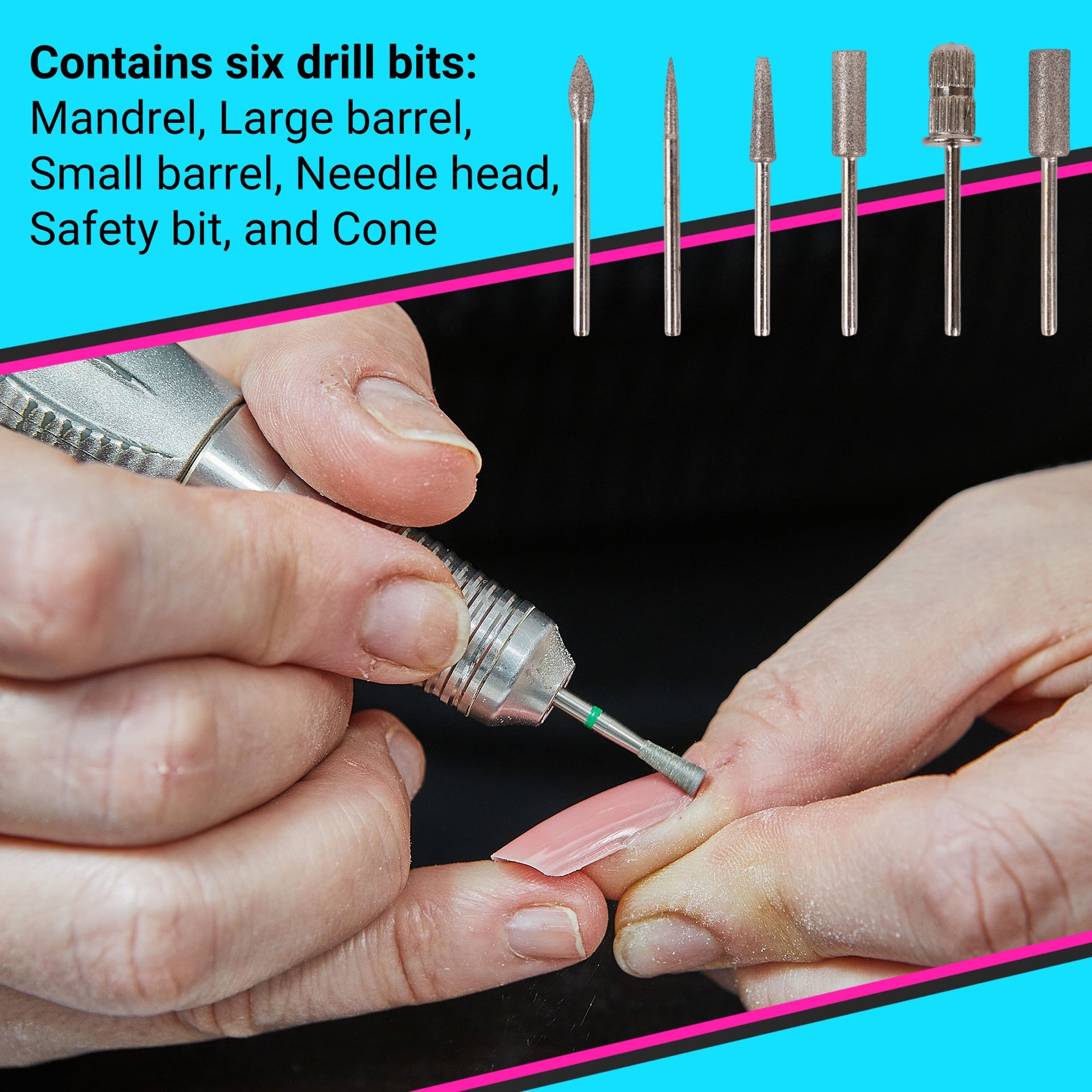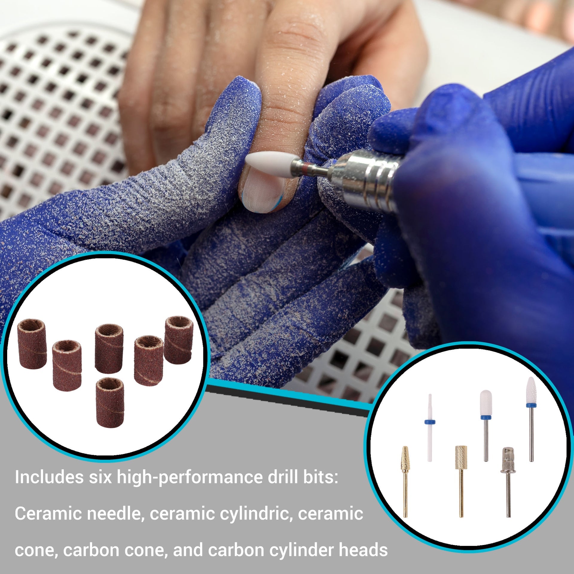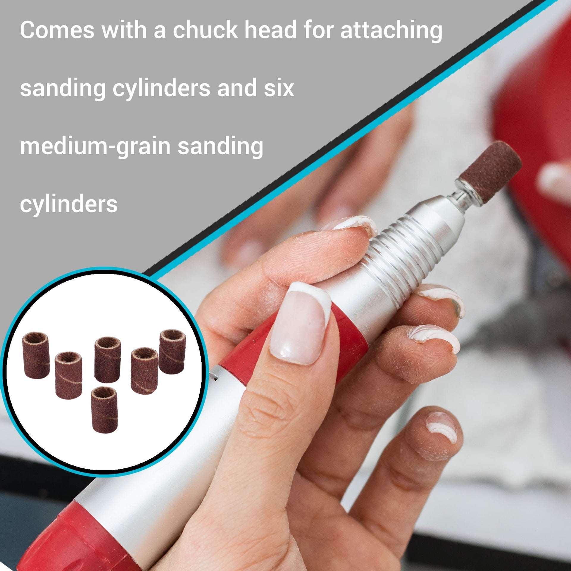 - Includes six sanding bands in 80, 120, and 180 grit for versatile nail care.