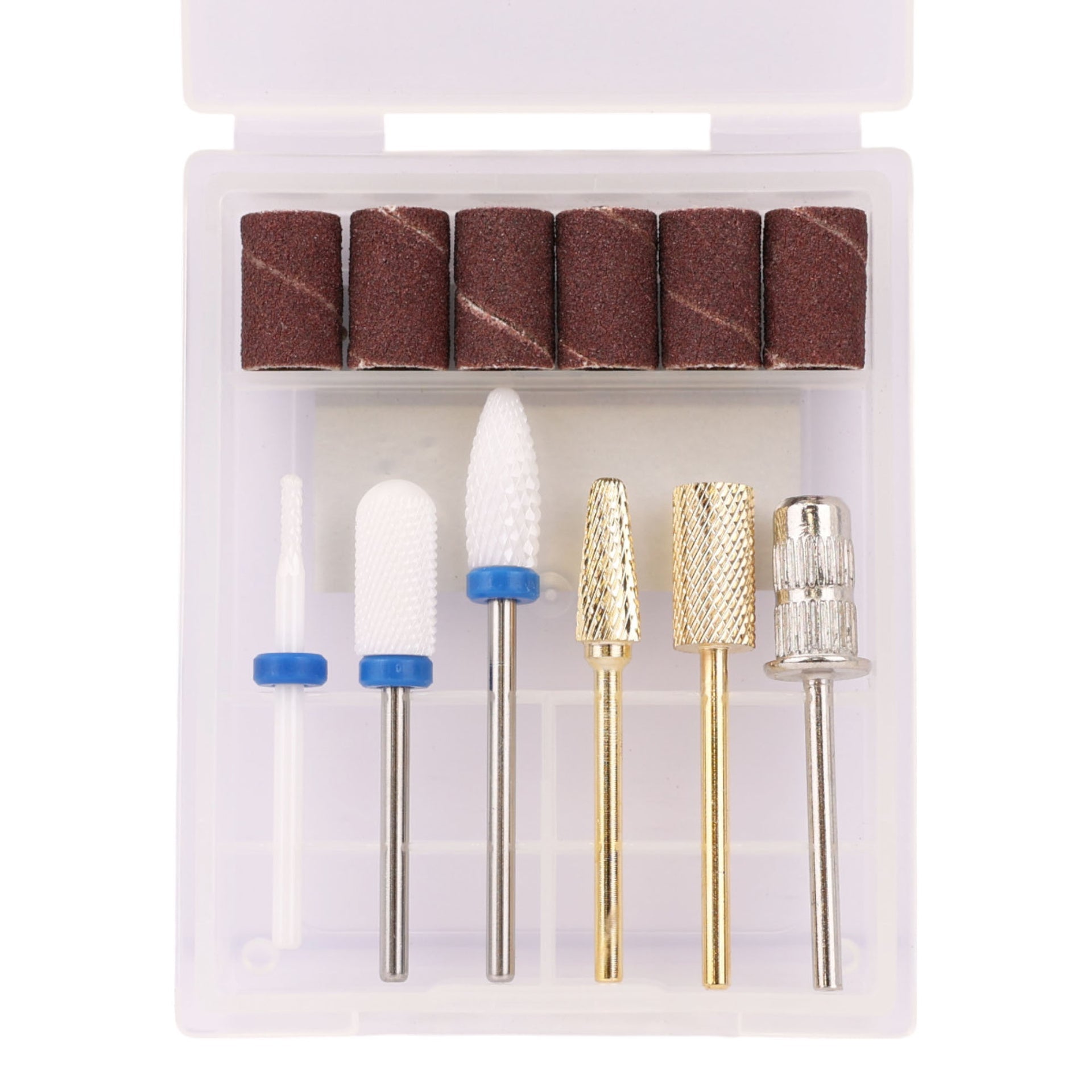 The Kiepe Nail Drill Bit Kits 6pcs is a versatile and professional-grade solution for all your manicure and pedicure needs. This set includes six high-quality drill bits, including a mandrel, large and small barrels, needle head, safety bit, and cone, all designed for precision filing, polishing, and cuticle care. Accompanied by six sanding bands in 80, 120, and 180 grit, this kit caters to both natural and artificial nails, making it ideal for removing gel polish, refining edges, and smoothing nail surfaces. Crafted from premium tungsten carbide and ceramic, the bits ensure maximum strength, durability, and heat resistance, delivering an efficient and seamless experience. The universal 3/32" shank size fits most standard nail drills, allowing effortless compatibility with your existing equipment.