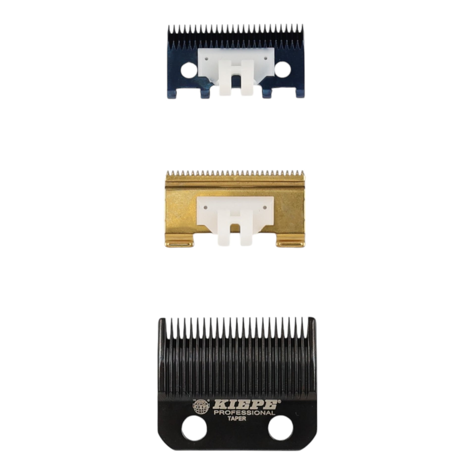 Installing the Kiepe Taper Clipper Blade 636.1 is straightforward, ensuring that you can quickly replace your old blades and continue working without interruption. The set includes three distinct blades: Black DLC for general tapering, Gold DLC with 28 teeth for fine detailing, and Blue DLC with 26 teeth for deeper cuts, providing versatile options for various cutting needs. These blades are engineered to stay cooler during extended use, ensuring comfort for both the stylist and the client. Upgrade your clipper with this professional-grade blade set and experience the difference in cutting quality and durability.