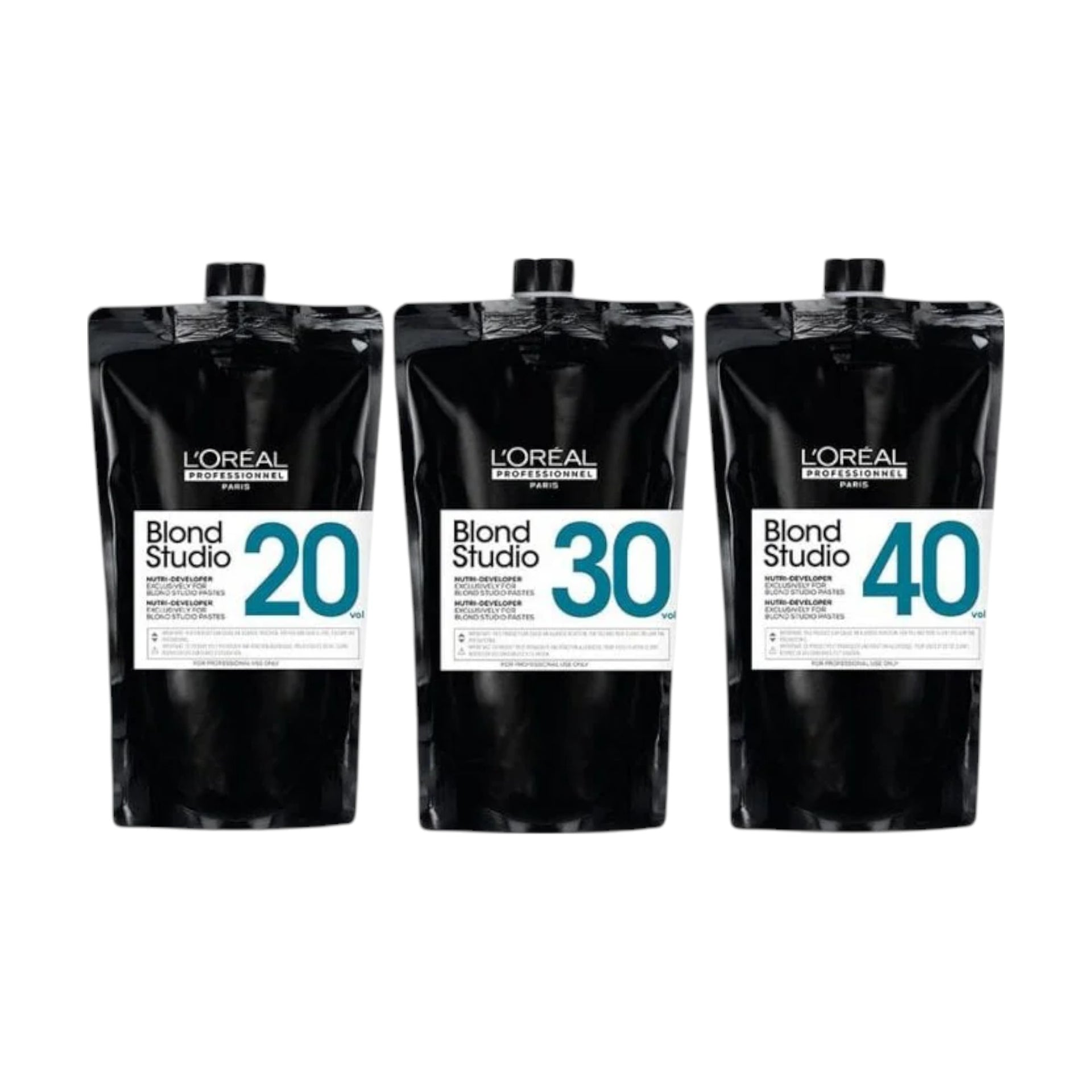 The Loreal Professionnel - Blond Studio Nutri-Developer 1000ml is a conditioning cream oxydant, specifically and exclusively formulated to deliver perfect, luminous blonde results with L'Oréal Professionnel's Platinium lightening pastes. This professional developer has a smooth, rich, and creamy texture that ensures an easy and precise application, which is vital for achieving even results in all lightening techniques. The nutri-developer technology helps to maintain the hair's health and condition during the chemical process, protecting the fibre while it lifts. It is the essential partner for unlocking the full potential of the Blond Studio Platinium system.