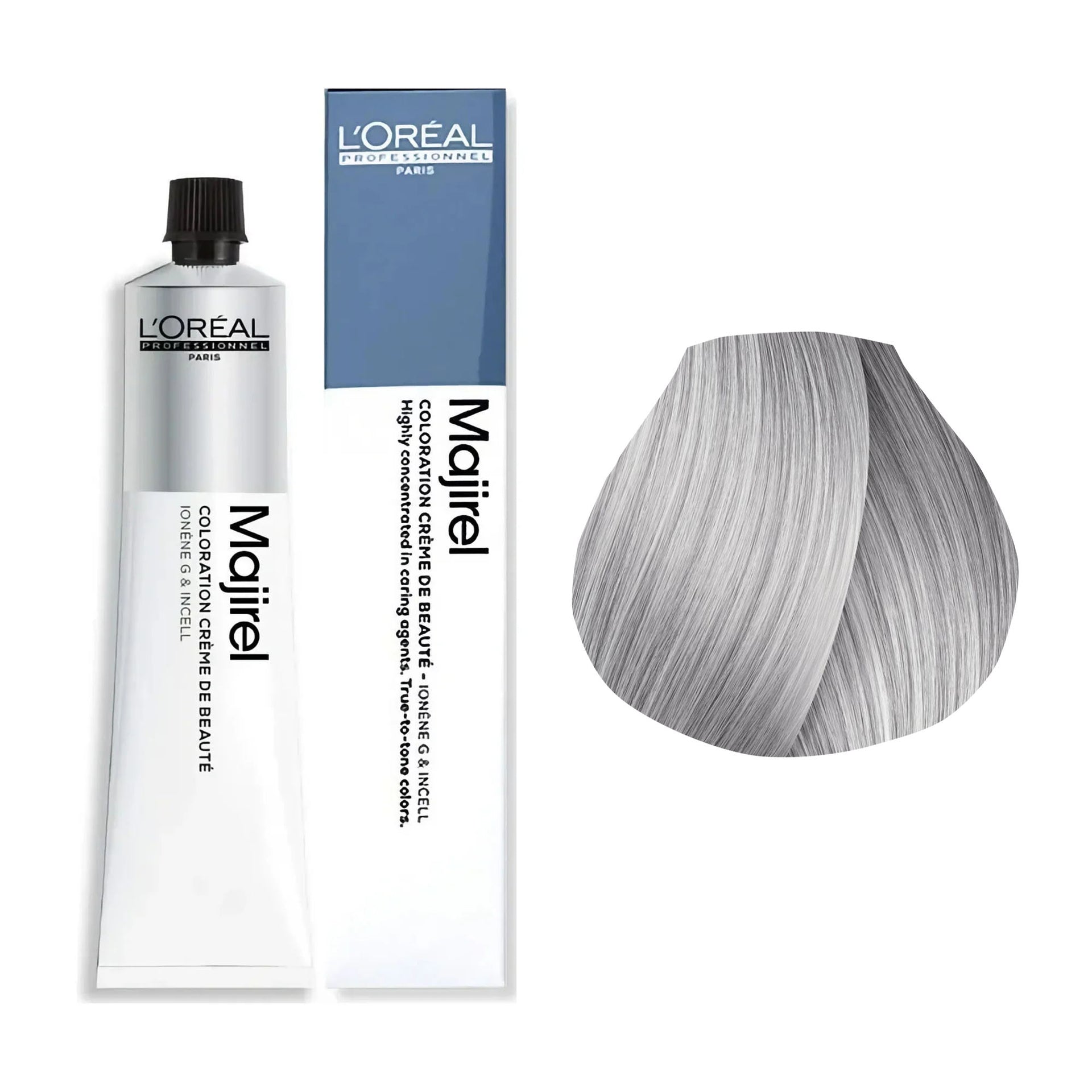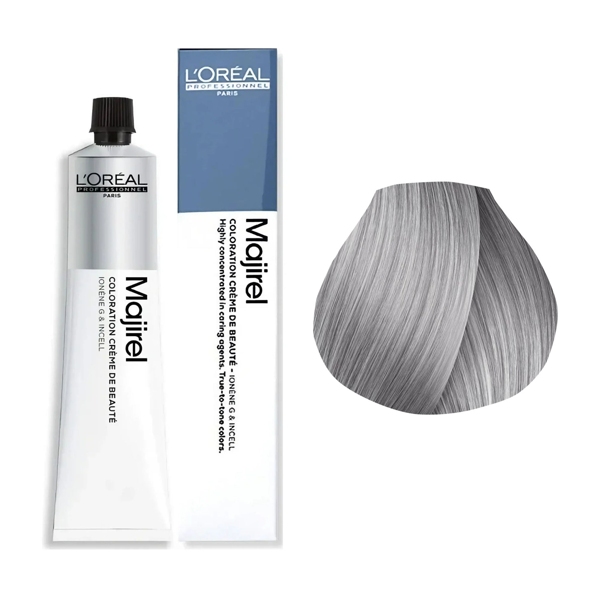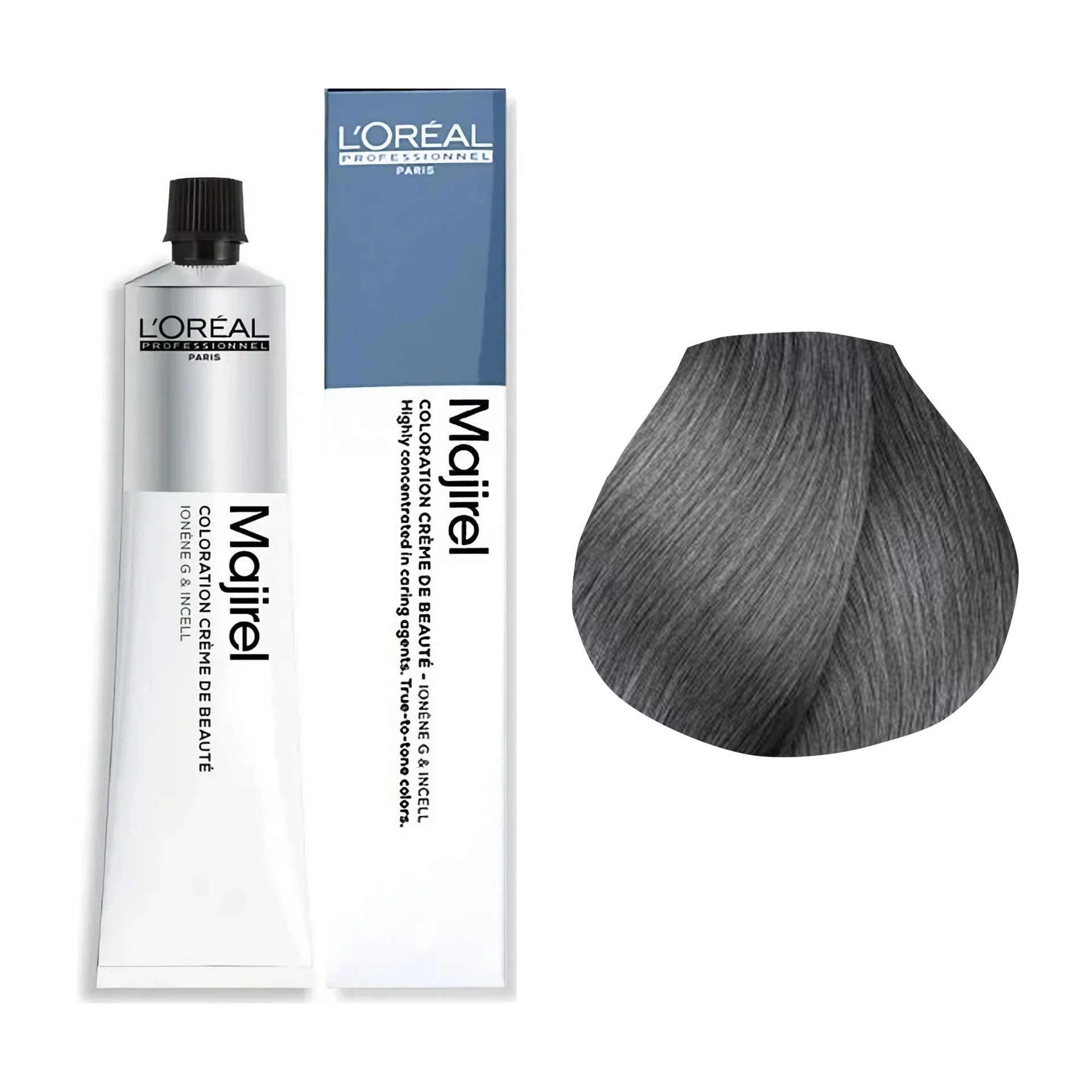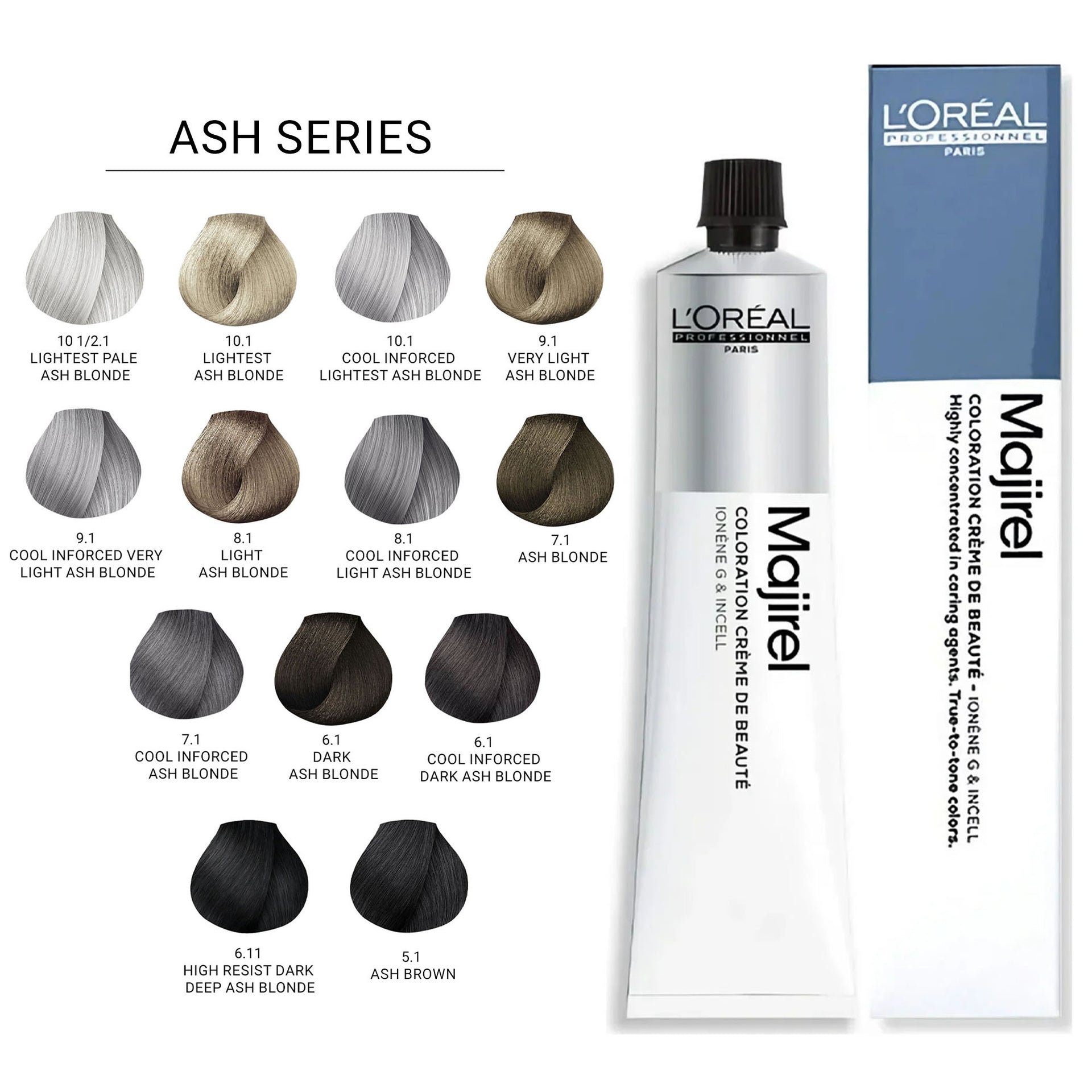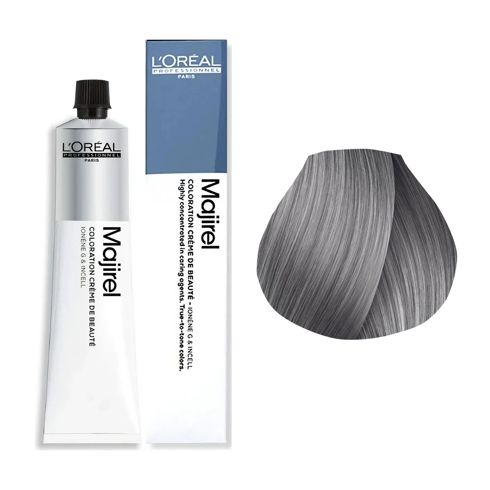 L'Oréal Professionnel Majirel Permanent Hair Colour Ash Series delivers vibrant, long-lasting colour with a comprehensive range of rich, natural shades. Specially designed to cover 100% grey hair, it leaves hair feeling silky, soft, and nourished. The advanced Ionène G™ and Incell™ technologies ensure superior hair care by treating all three levels of the hair fibre, from the core to the surface. This dual-action technology not only restores the natural structure of the hair but also fortifies it, leaving it protected, shiny, and healthy.